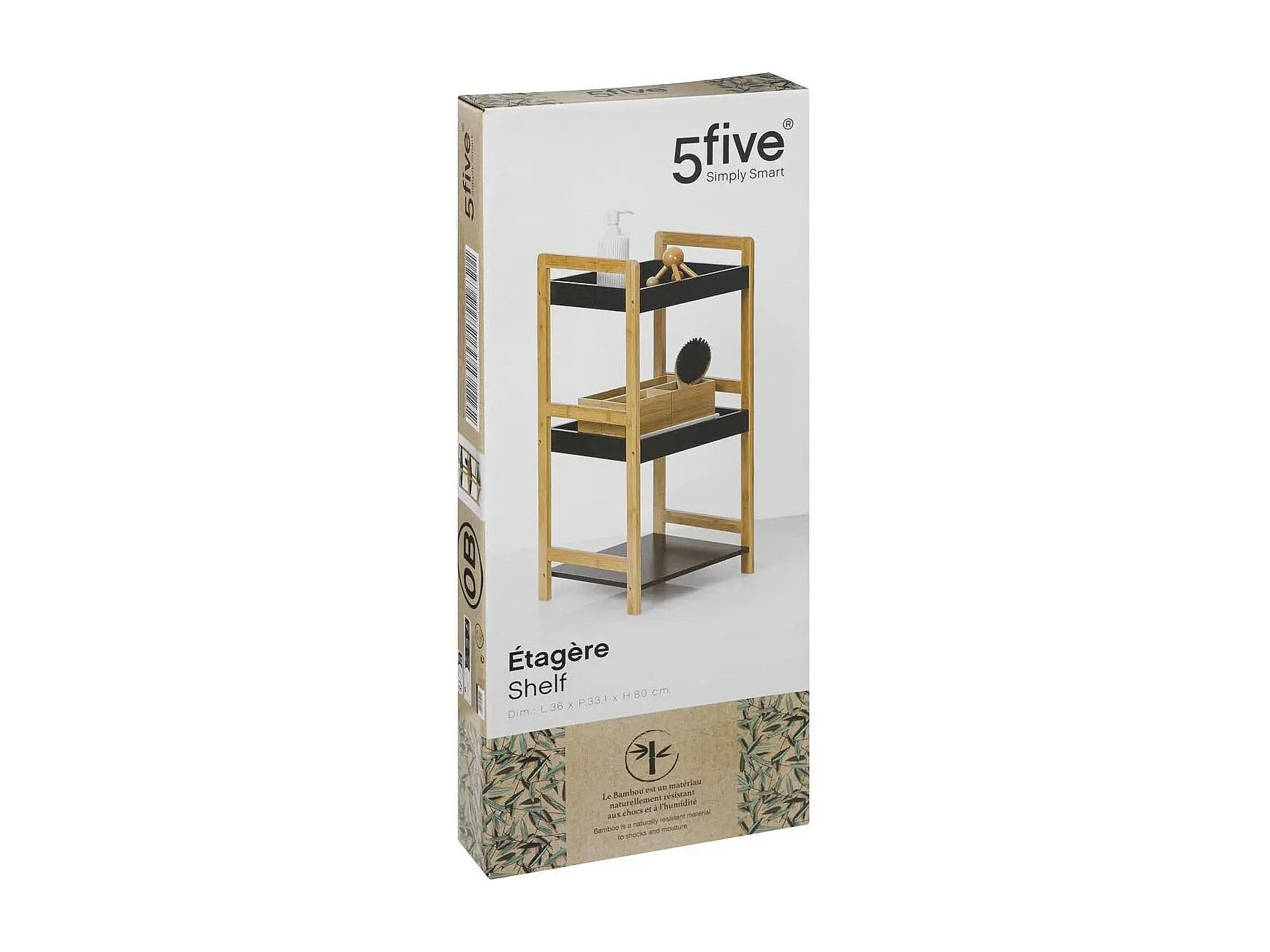 Étagère de rangement 3 niveaux en Bambou et Bois Noir H 80 cm