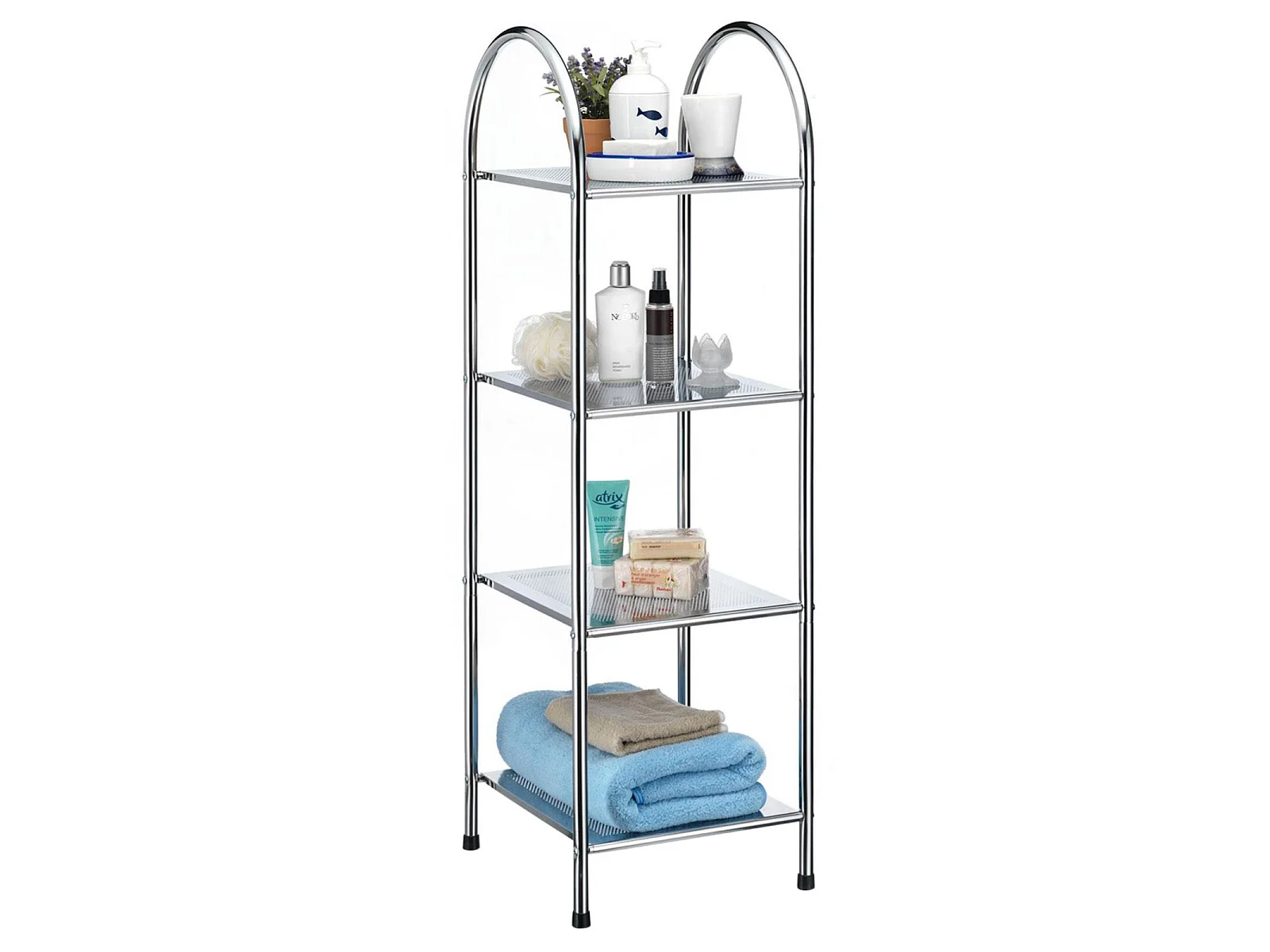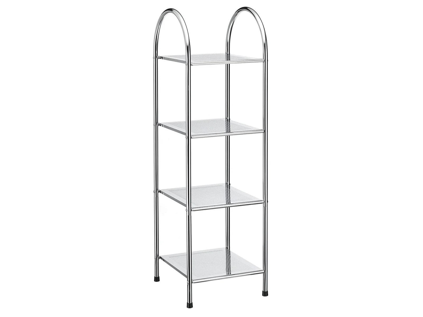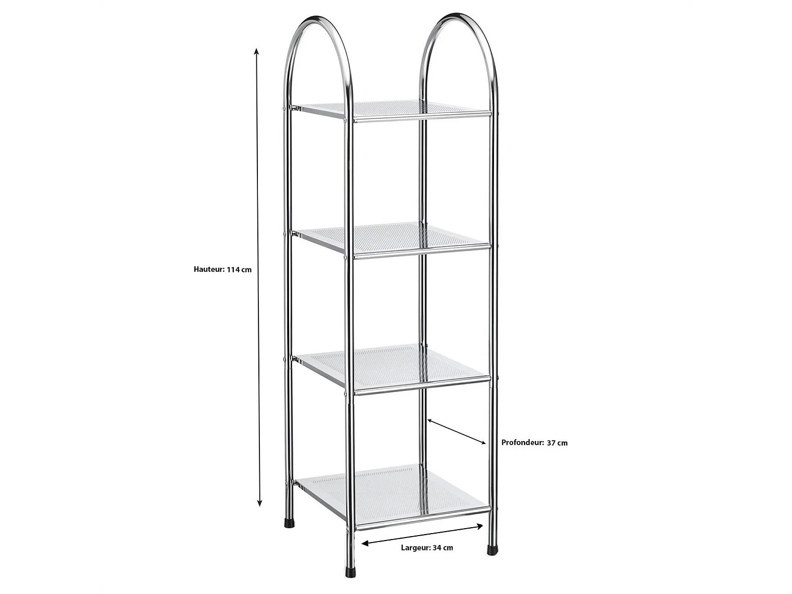 Etagère de salle de bain SECA meuble de rangement sur pied avec poignée et 4 tablettes, en métal chromé