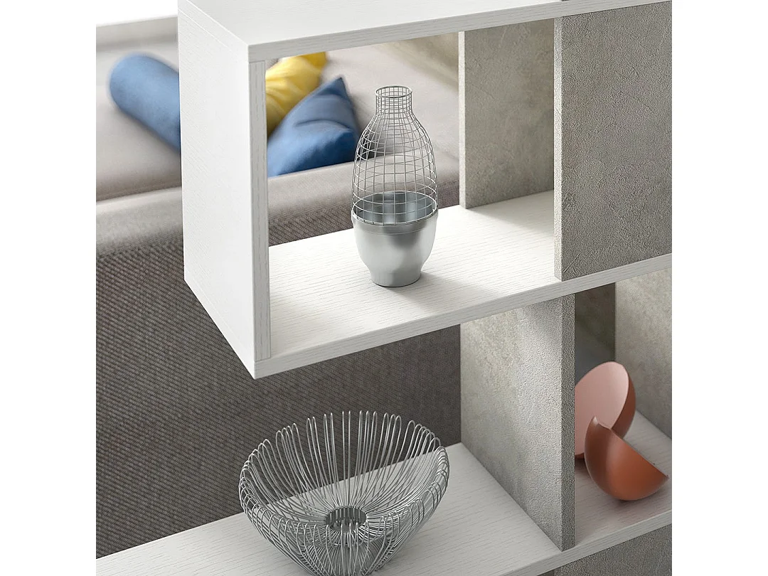 Étagère De Séparation En Bois Blanc Avec Inserts En Ciment