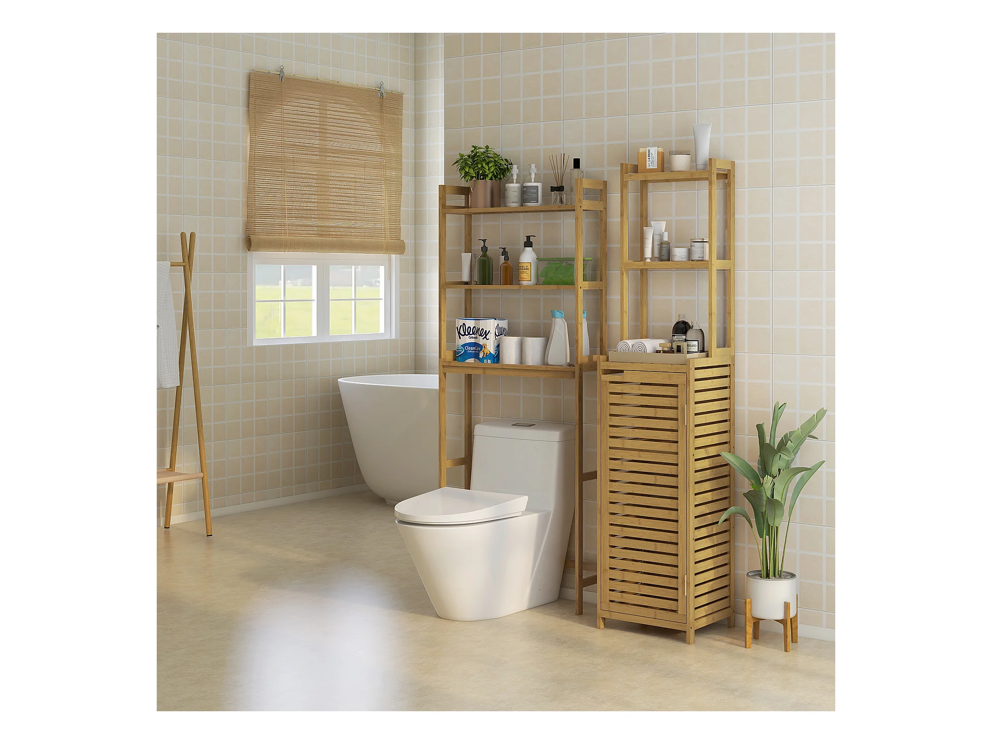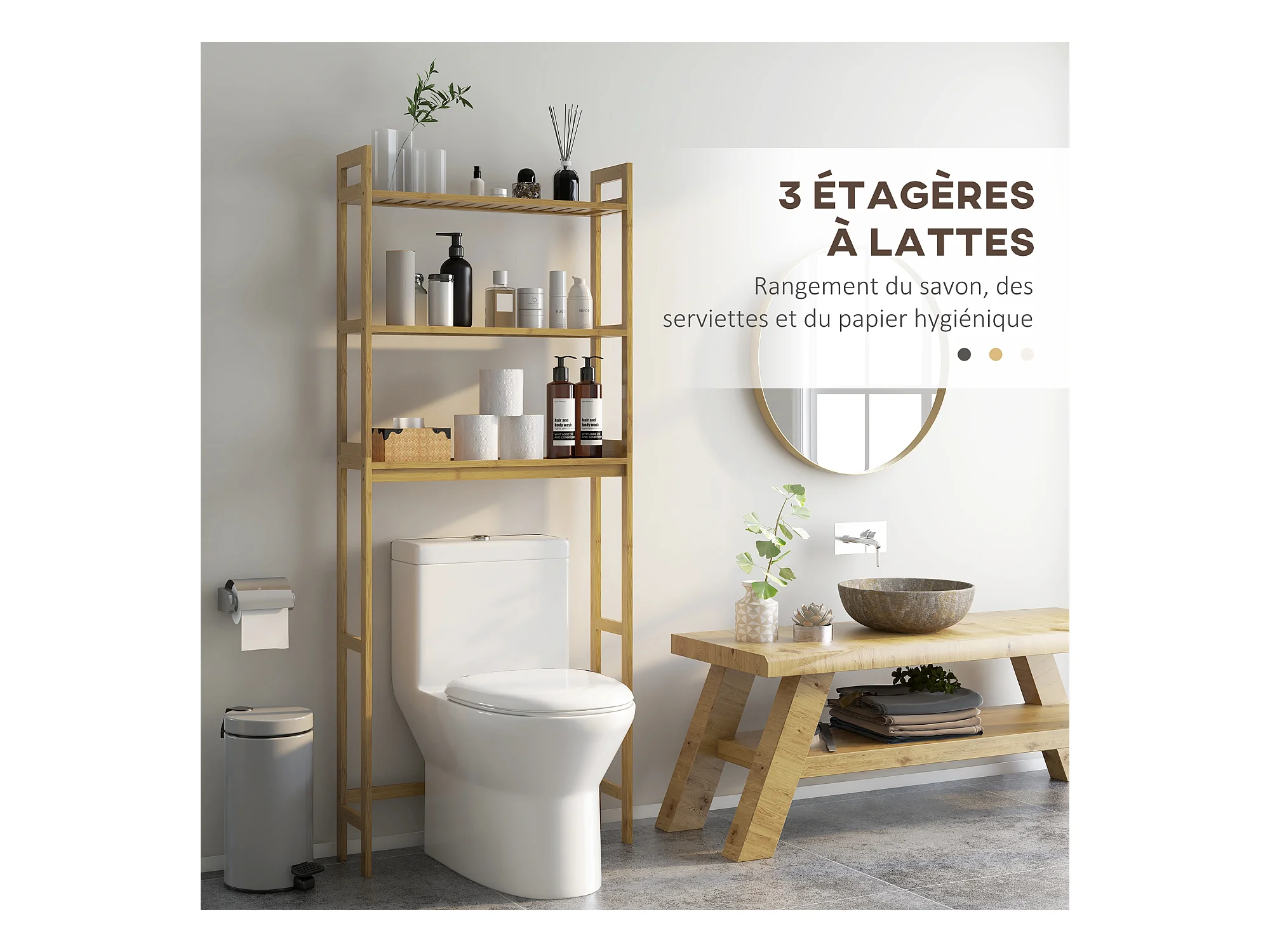 Étagère de toilettes WC 3 niveaux style cosy bambou