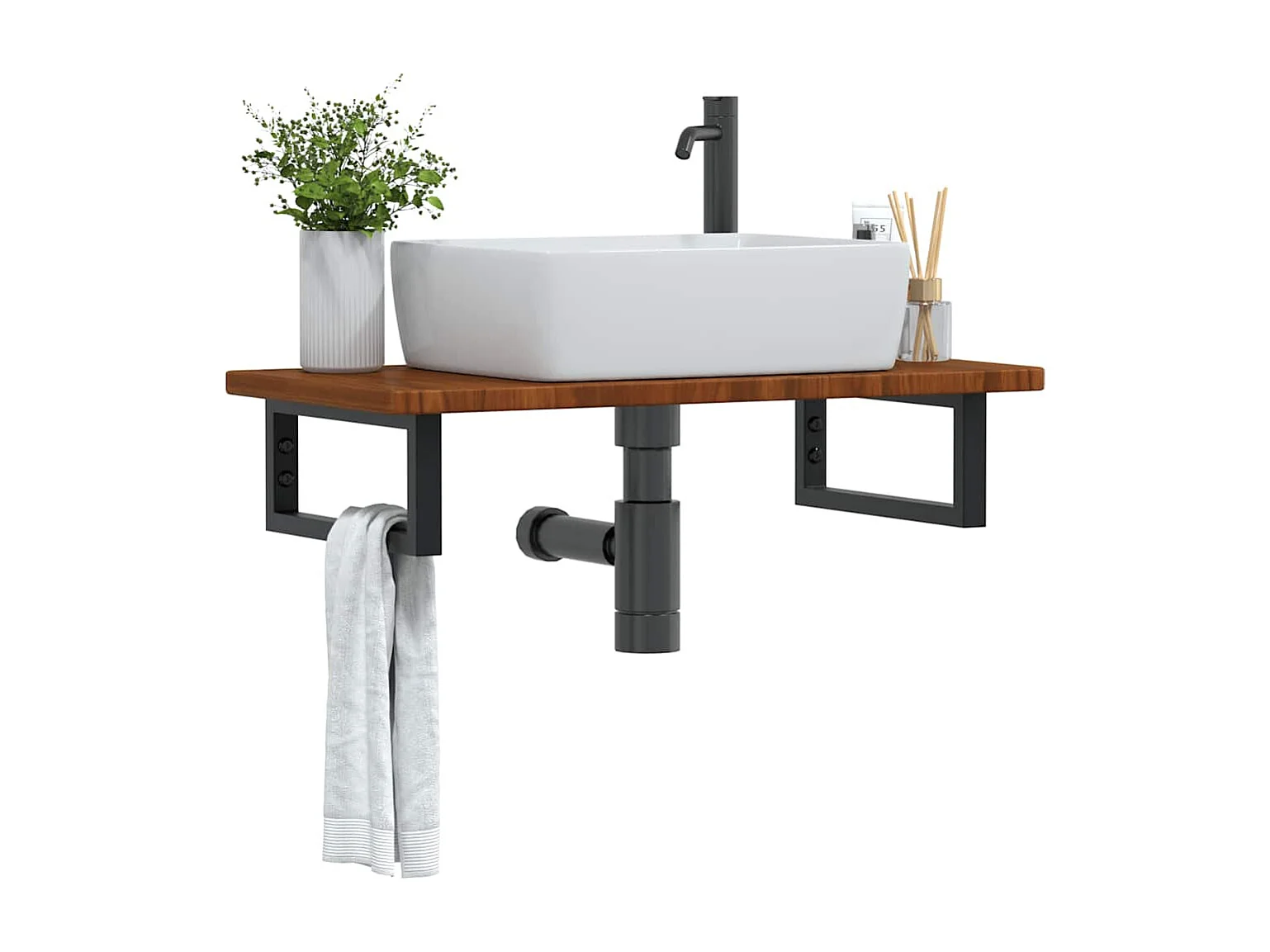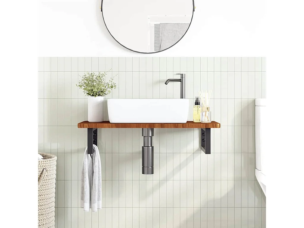 Étagère de vasque murale acier et bois de chêne massif