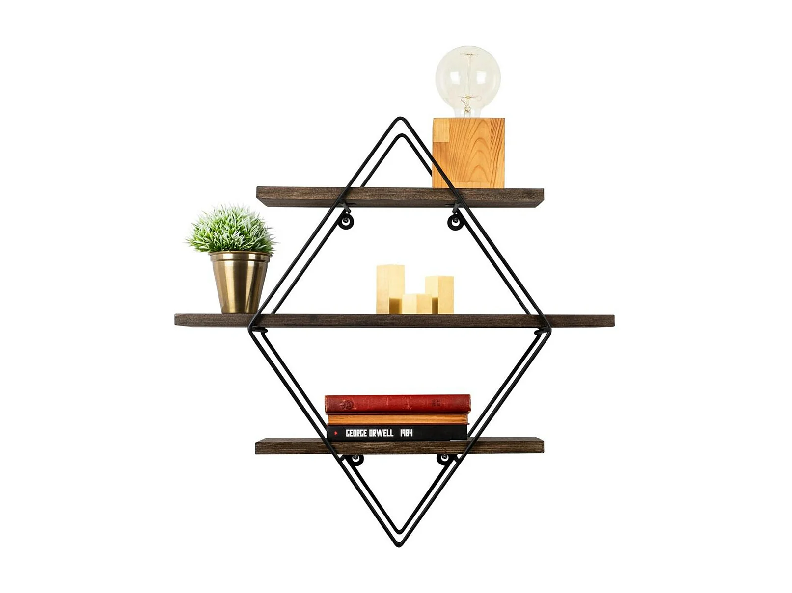 Etagère décorative noire losange décor bois foncé JENA
