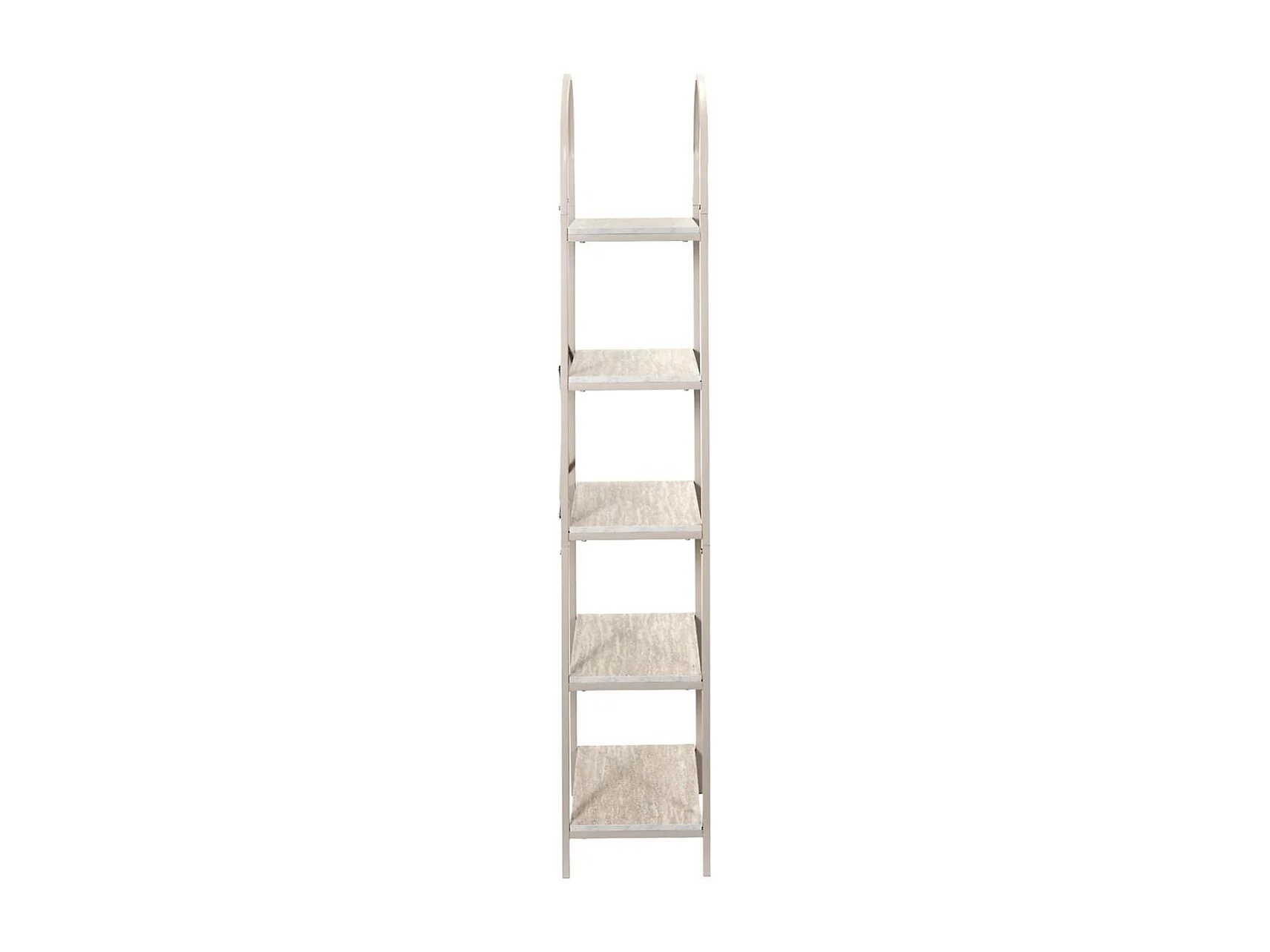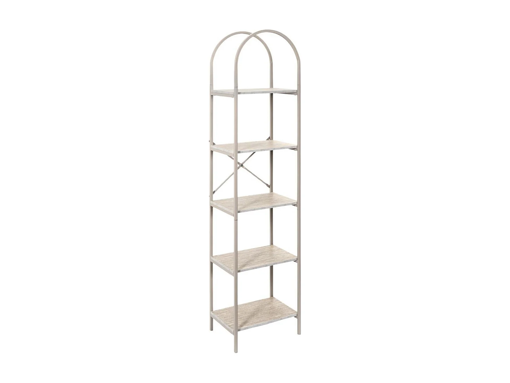 Etagère design arche 5 niveaux en métal laqué beige plateaux MDF aspect pierre naturelle - SHANON