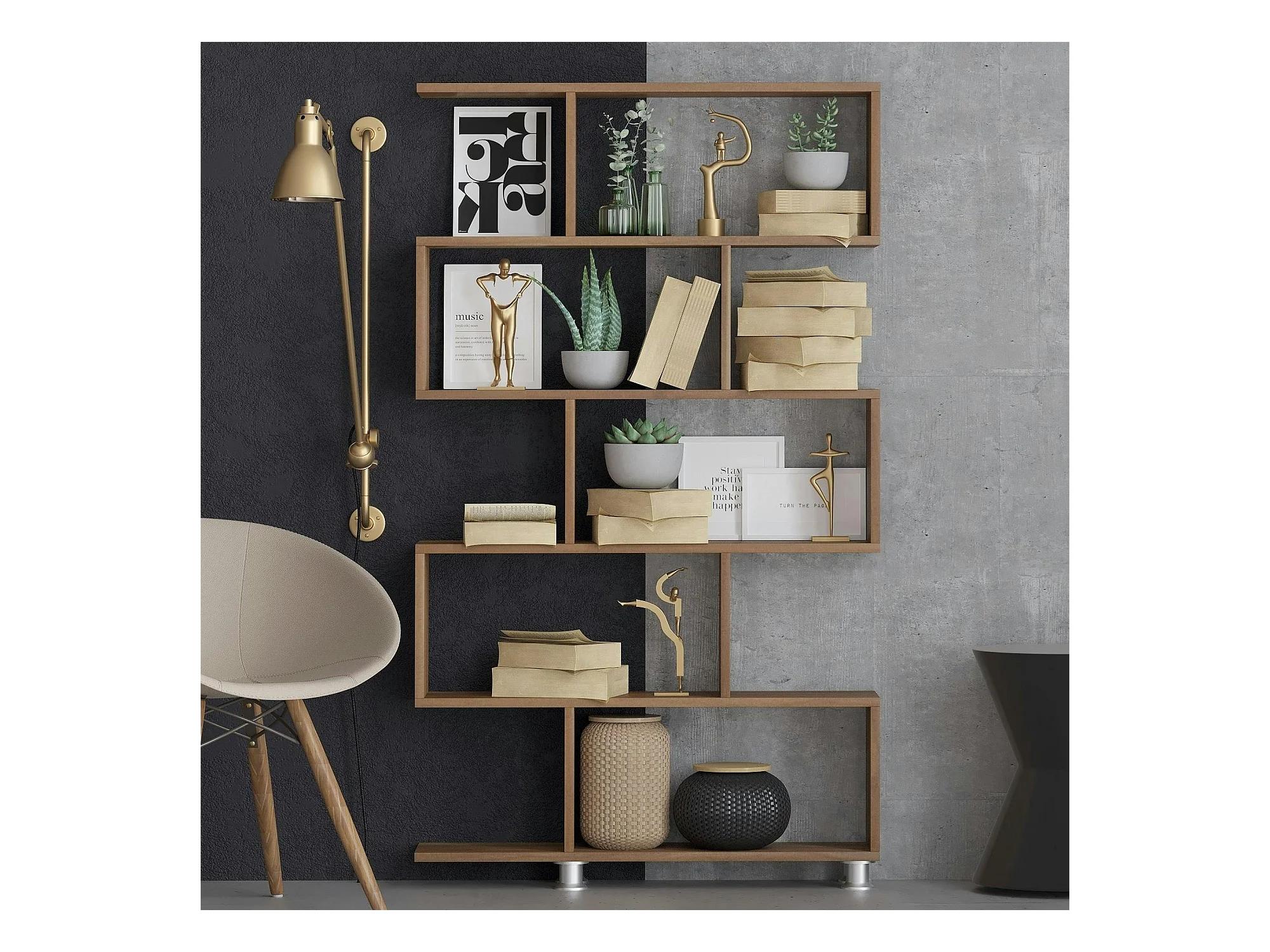 ELYSIAN - Etagère moderne 5 espaces de rangement bois et métal 180cm