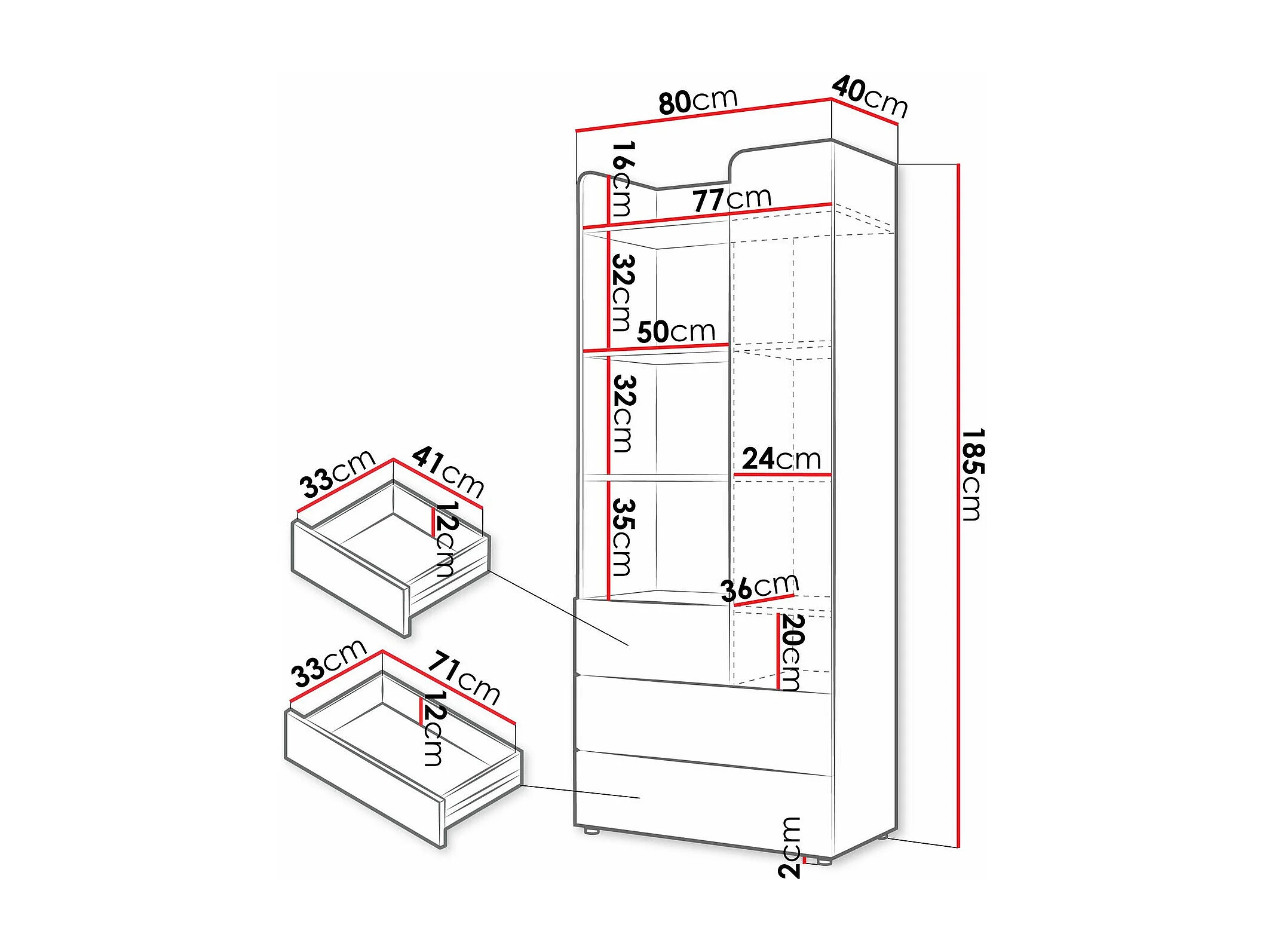 Étagère Domcali 102, Fermé|Avec tiroirs|Avec des portes, Stratifié, 185x80x40cm