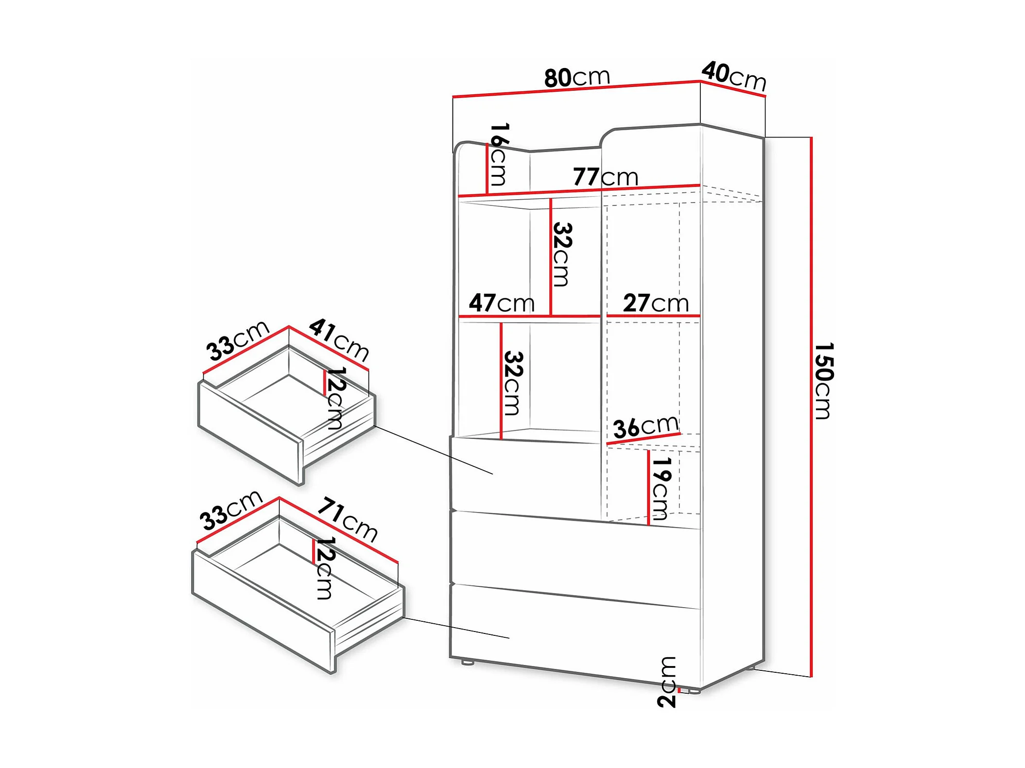 Étagère Domcali 105, Fermé|Avec tiroirs|Avec des portes, Stratifié, 150x80x40cm