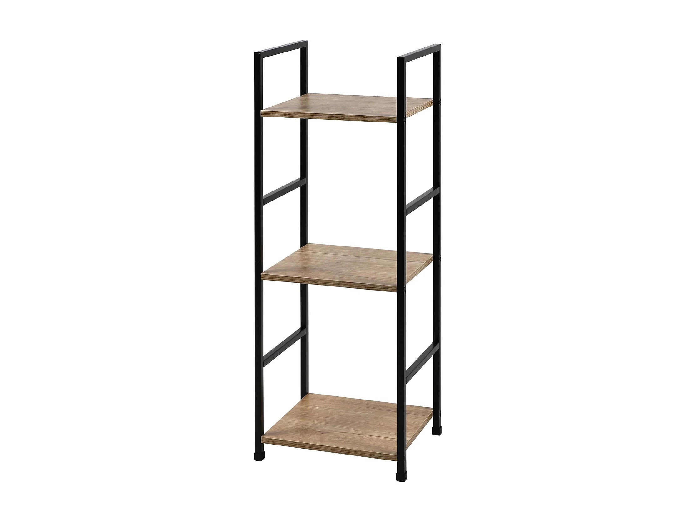 Meuble colonne de rangement 4 étagères coloris chêne/noir - Longueur 34 x Hauteur 130 x Profondeur 27 cm