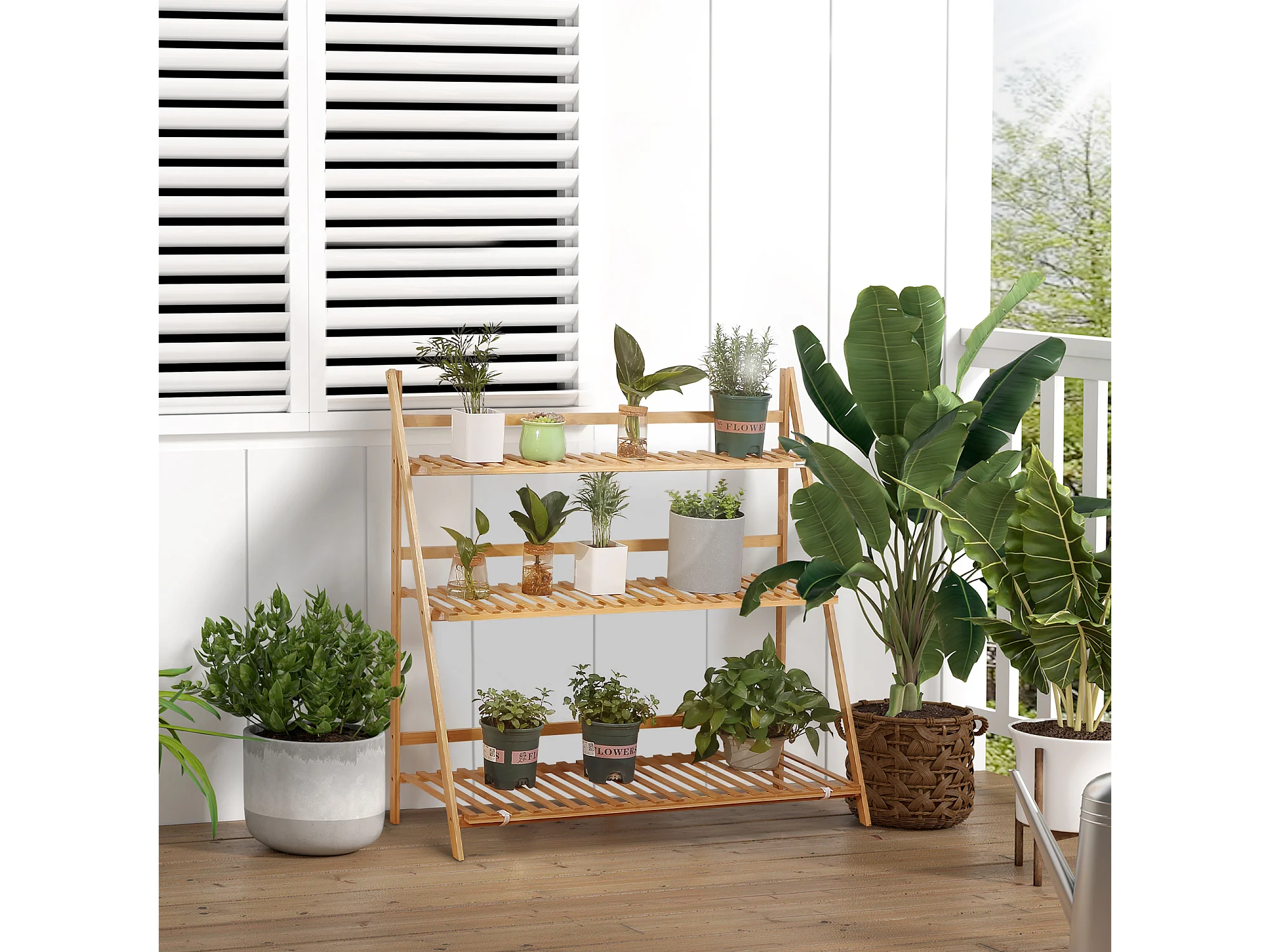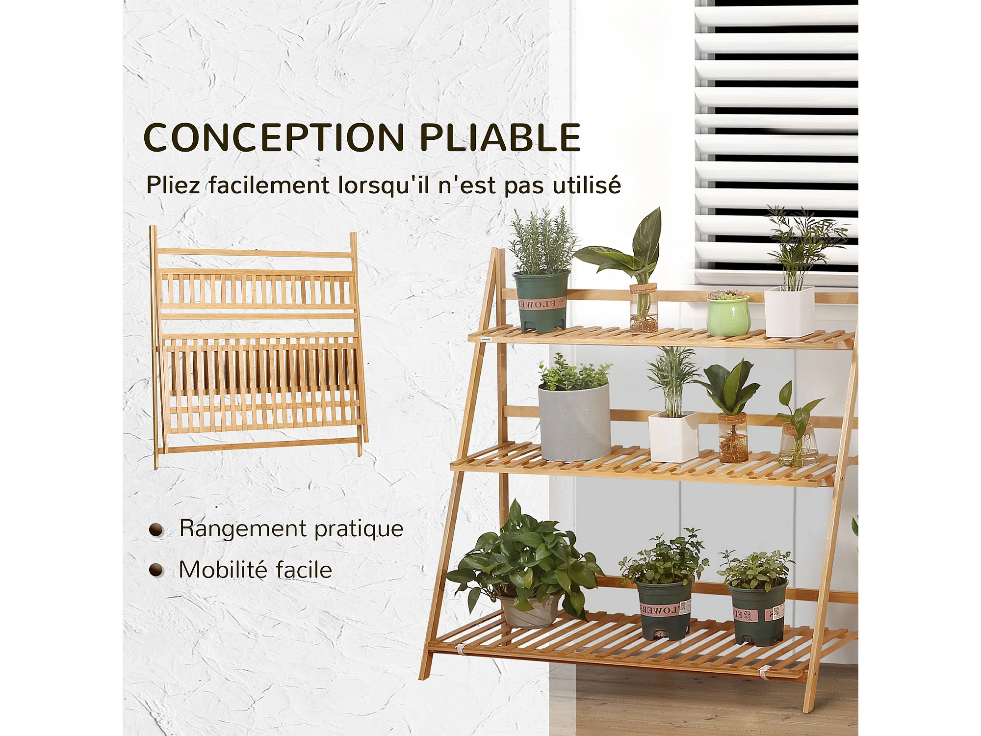 Étagère échelle à fleurs en bois de bambou - porte plantes pliable bois 3 étagères à lattes