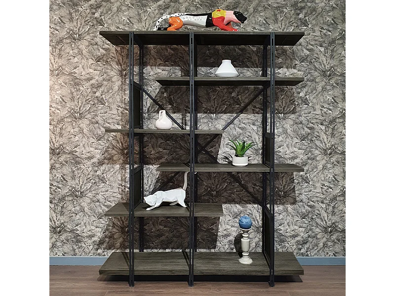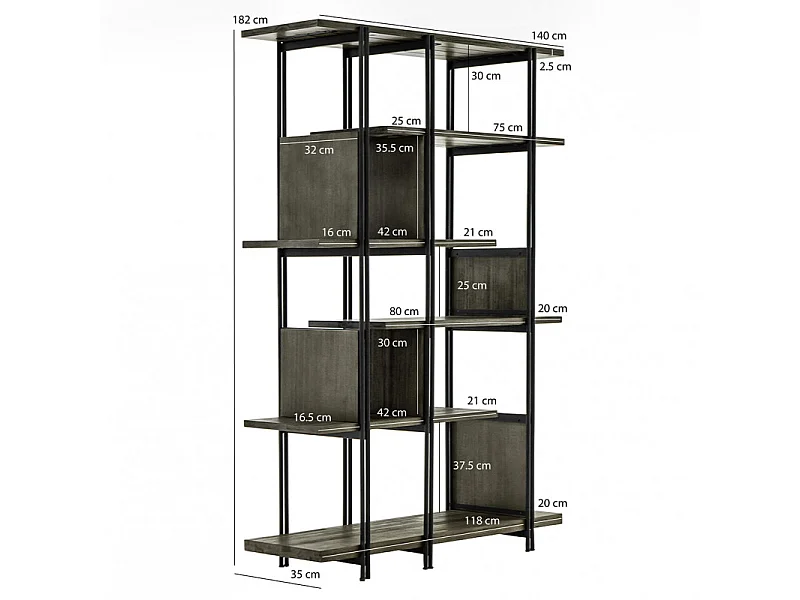 Étagère en bois d'acacia cendré avec piètement en métal noir - KUBI