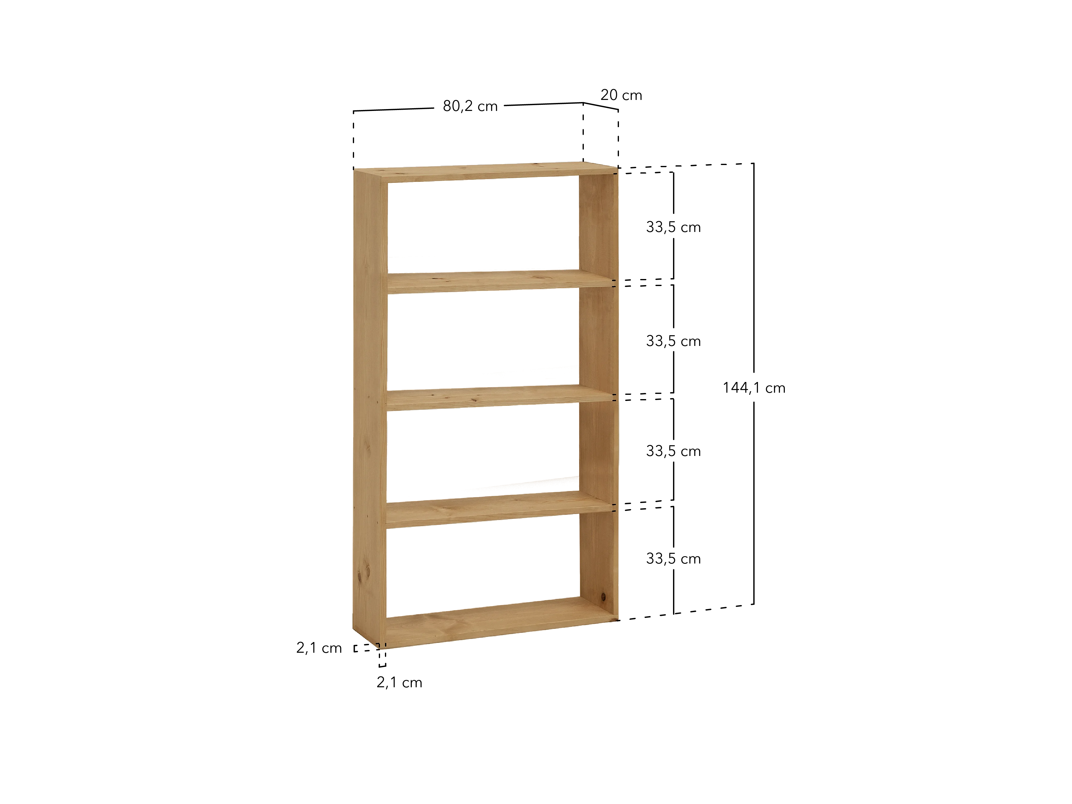 Étagère en bois de pin avec 3 étagères marron 80,2x144,1cm - SAURA - DECOWOOD