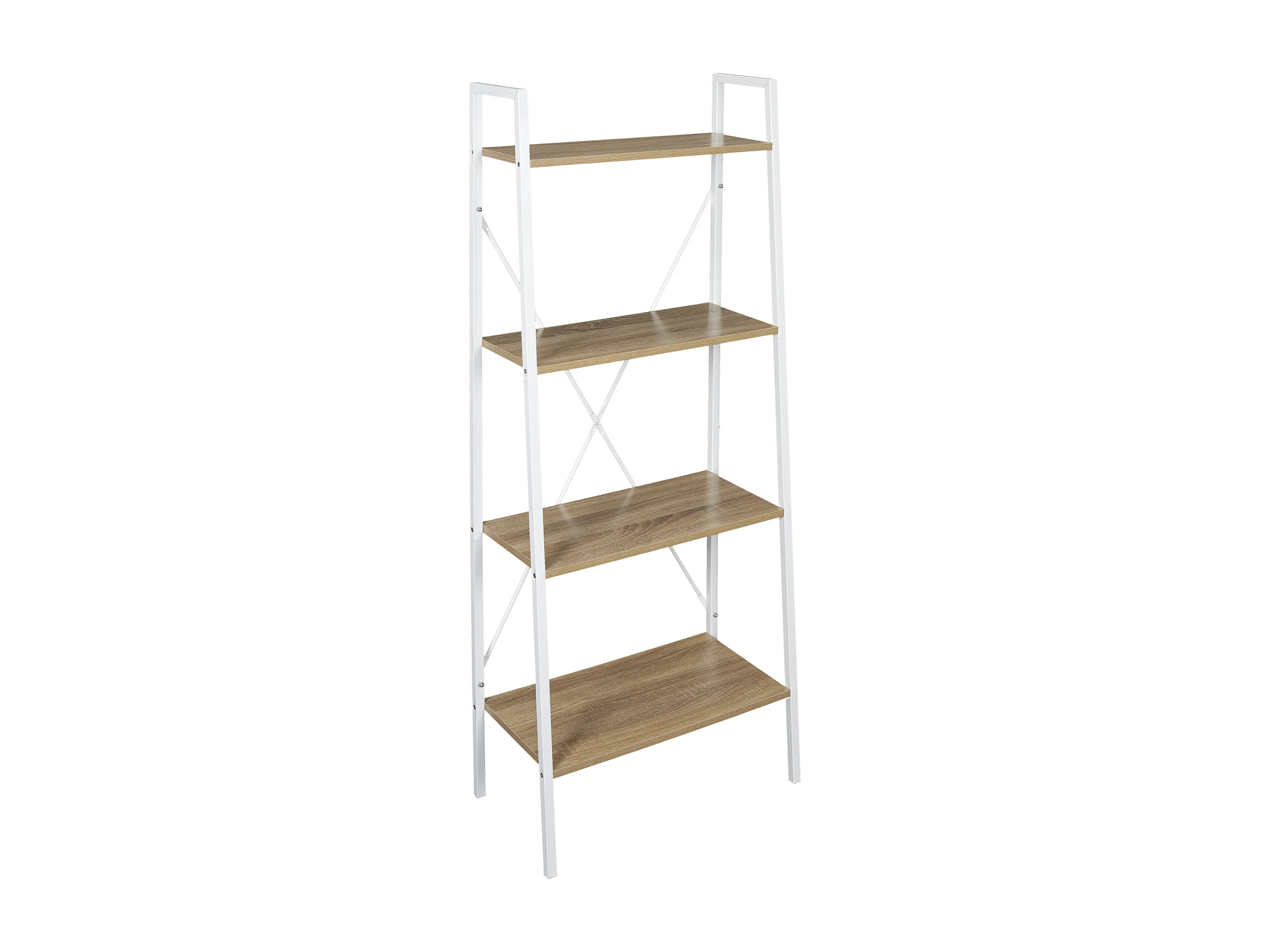 Etagere Bois Et Metal Blanc 148x60x325cm Marron, Blanc