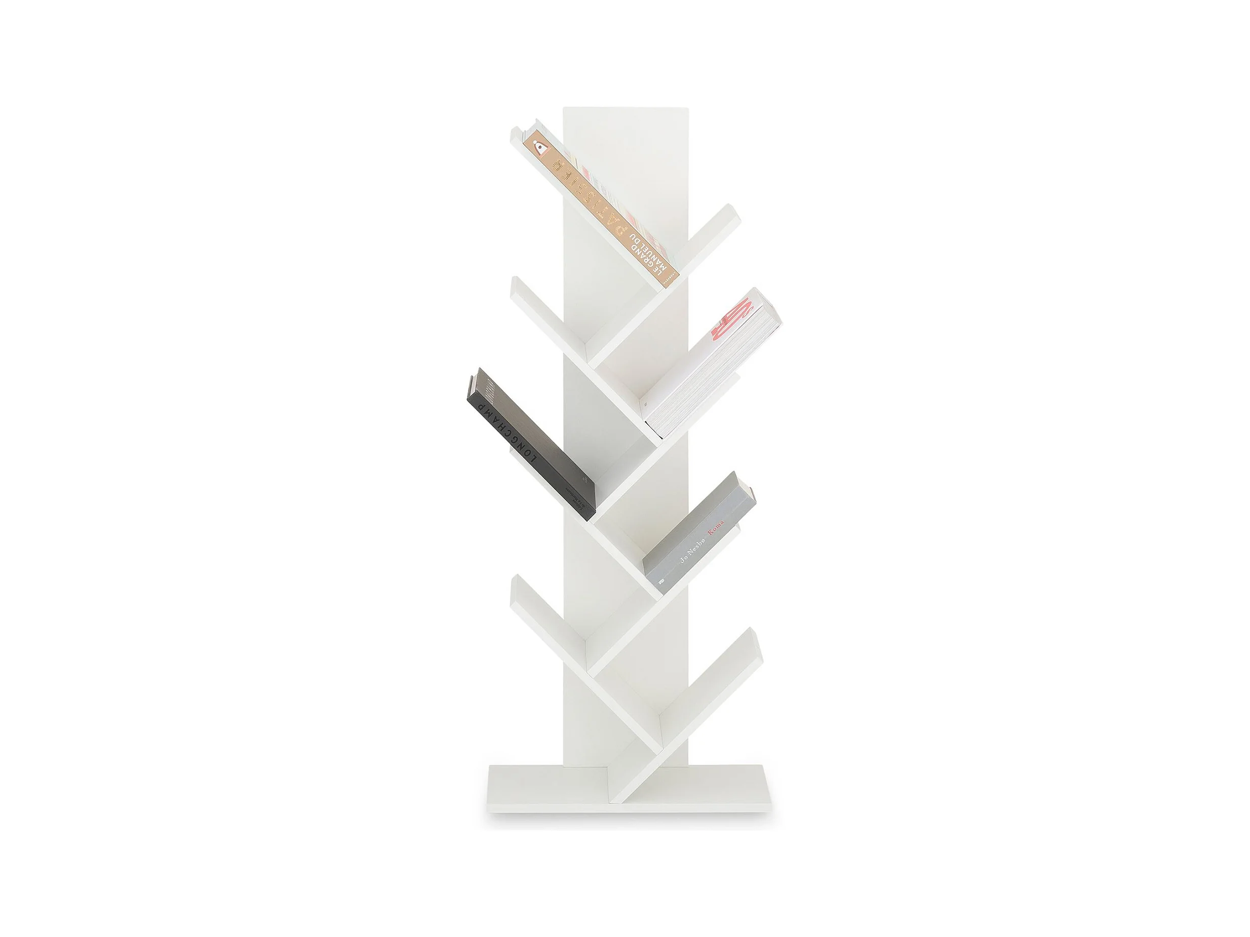 Étagère en bois JULES en forme d’arbre, Étagère autoportante avec pied robuste, Design original et pratique 48 x 116 x 24 cm, Blanc