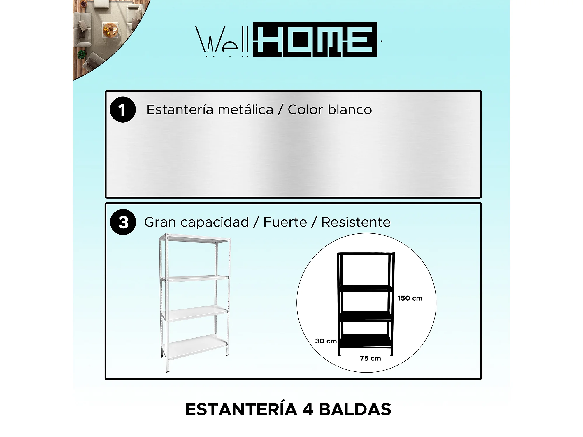 Etagère en métal blanc 4 étagères, 75x30x150 cm