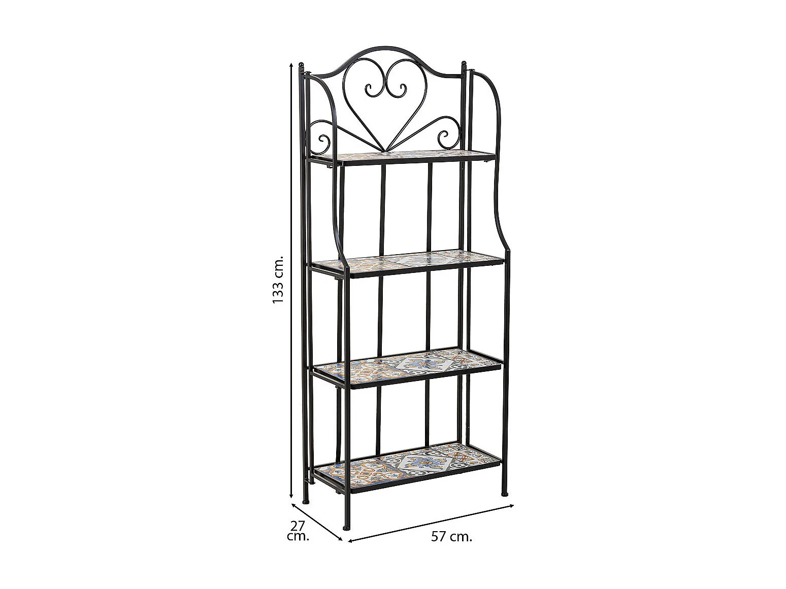 Étagère en mosaïque et fer forgé noire 57x27x133h