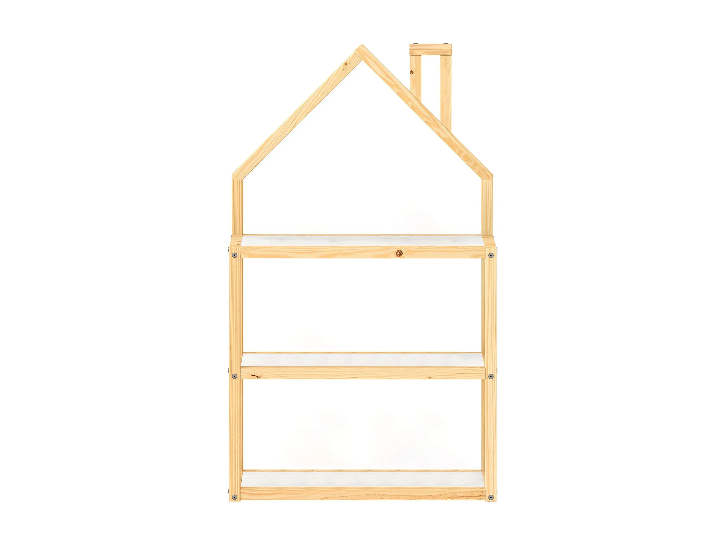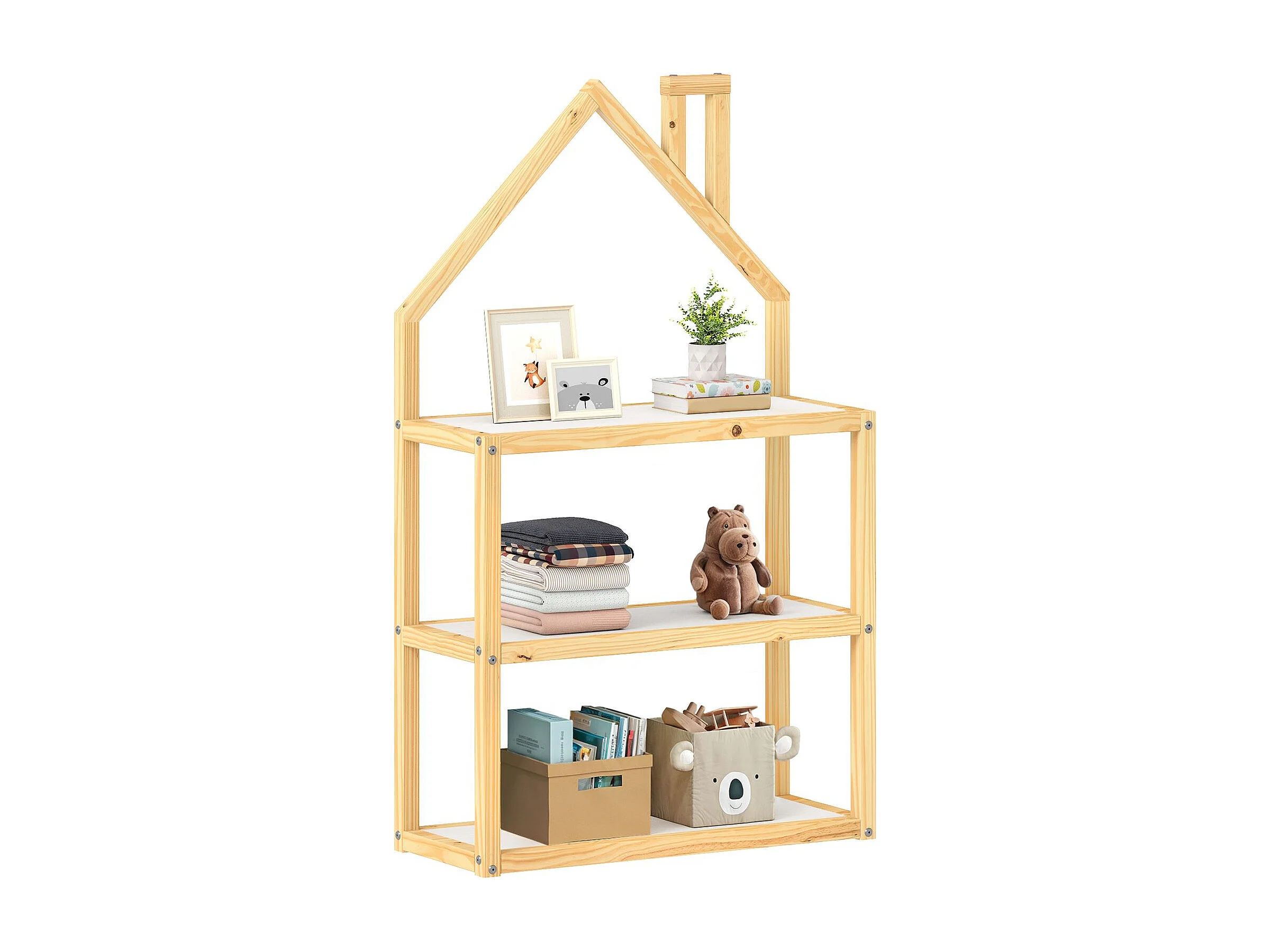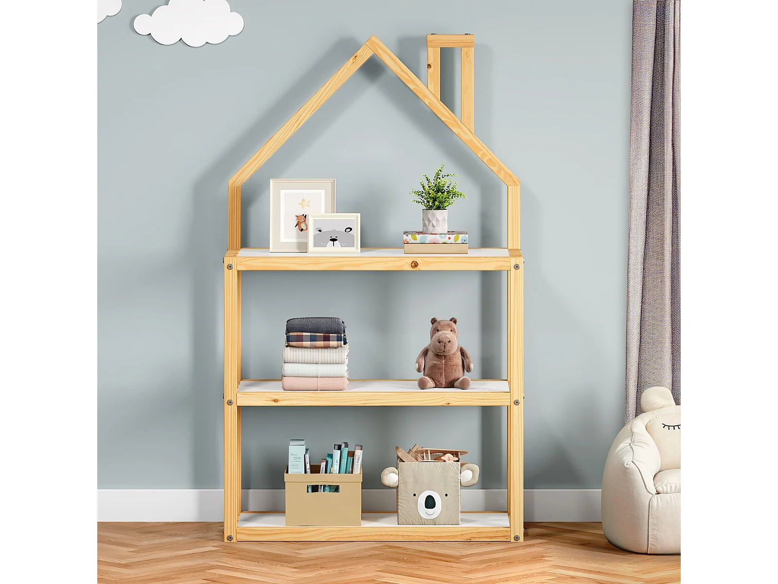 Étagère enfant YASMIN forme maison 3 étages 65 x 60 x 41 cm bois lasuré naturel/blanc – idéale chambre rangement Montessori