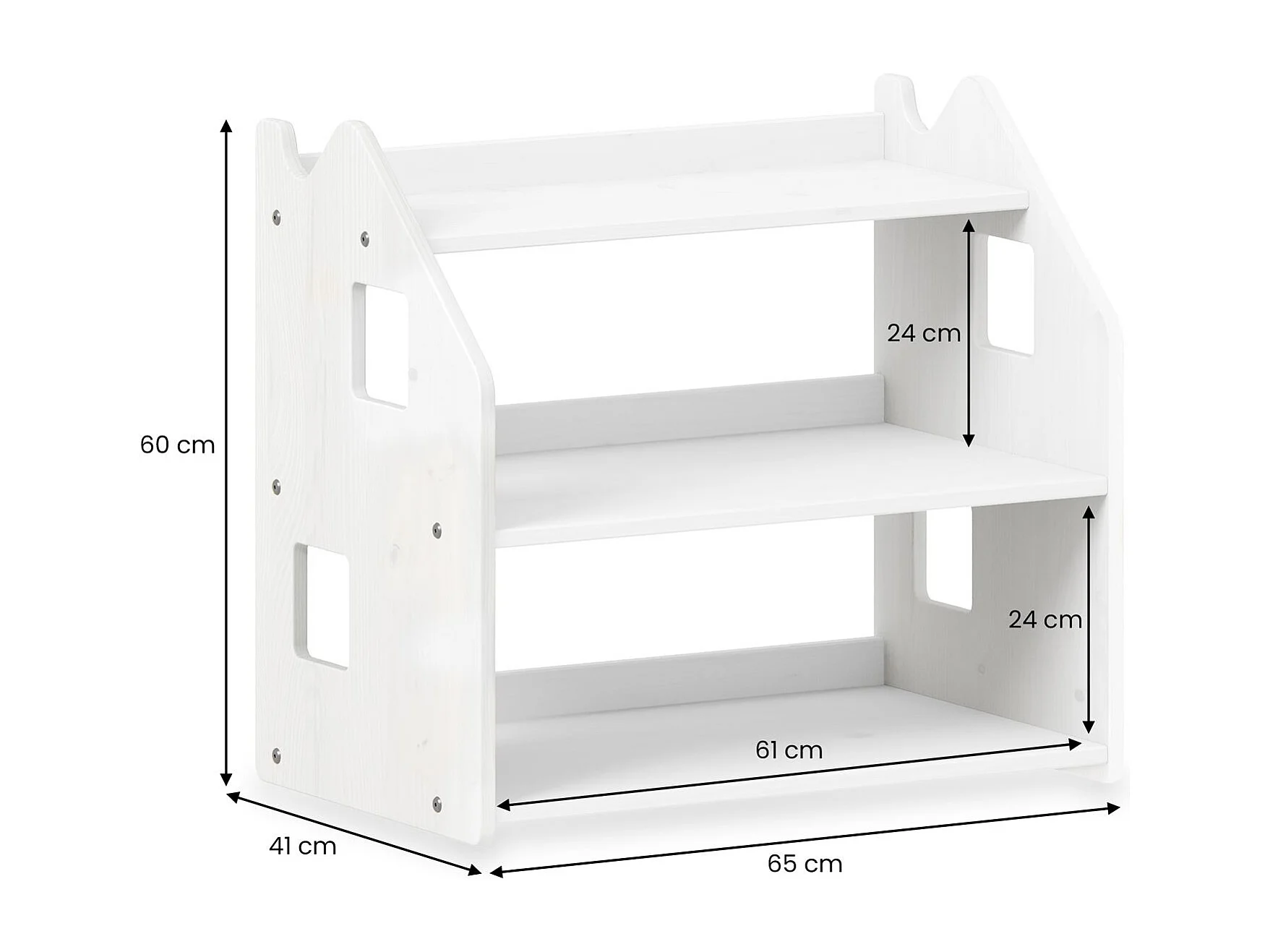 Étagère enfant YASMIN forme maison 3 étages 65 x 60 x 41 cm bois lasuré blanc – idéale chambre rangement Montessori