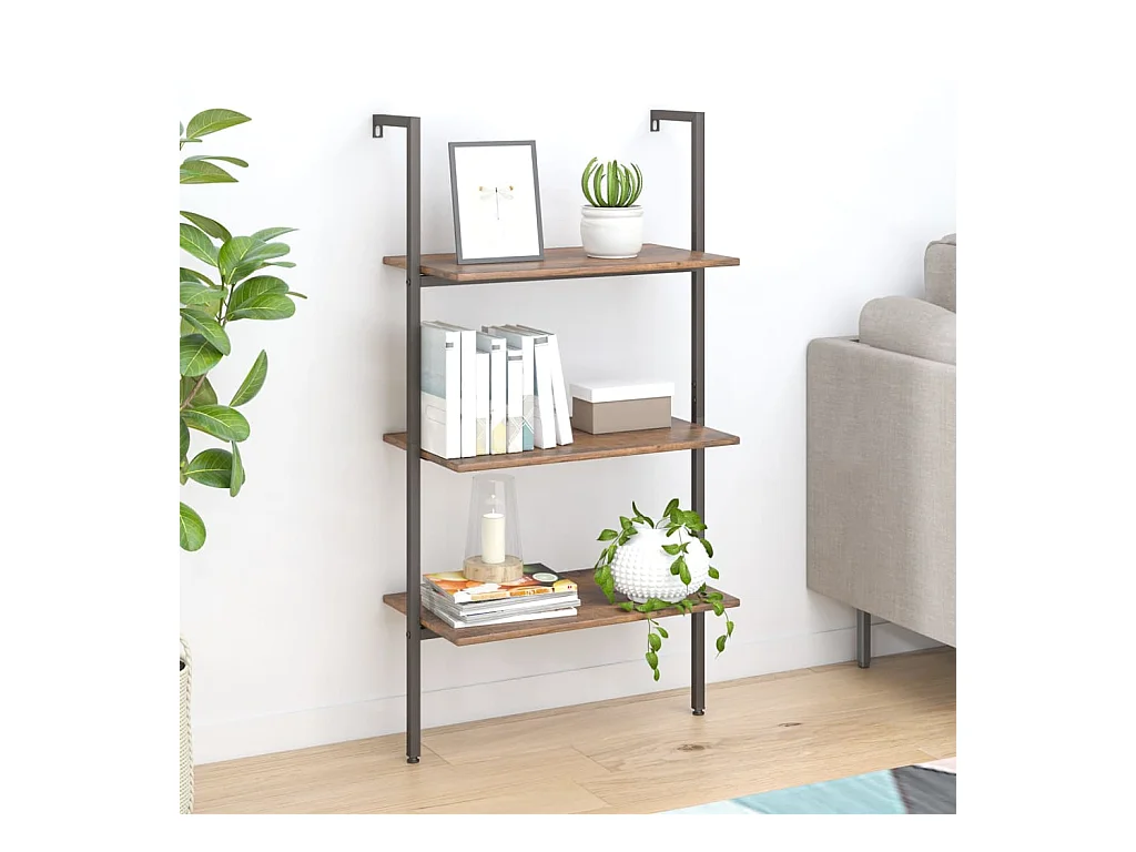 Bibliothèque à 3 niveaux chêne marron 59x35x90,5