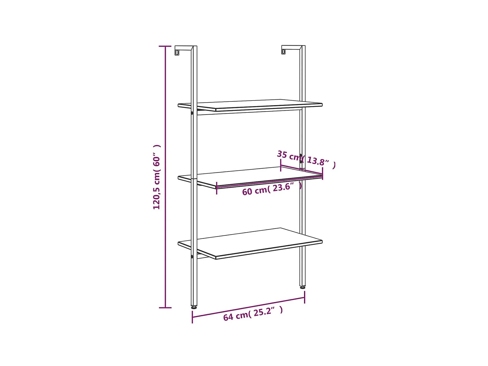 Étagère inclinée 3 niveaux Marron foncé et noir 64x35x120,5