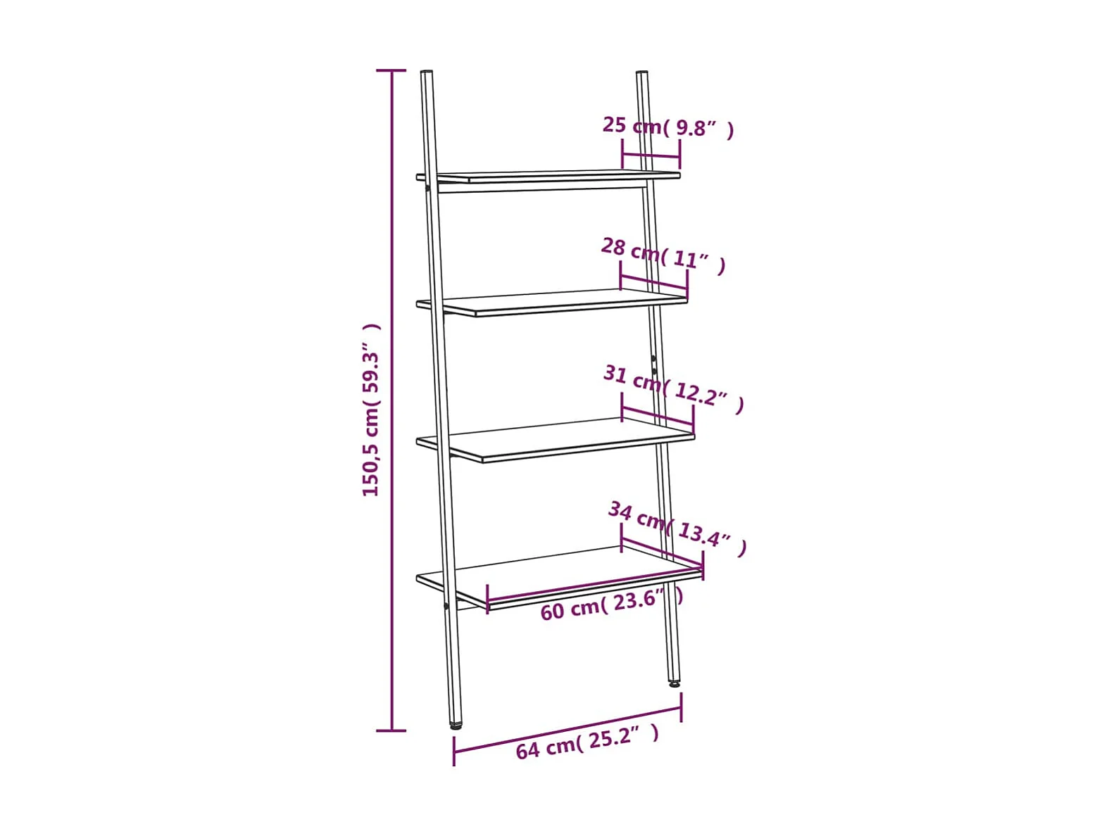 Étagère inclinée à 4 niveaux Noir 64x34x150,5