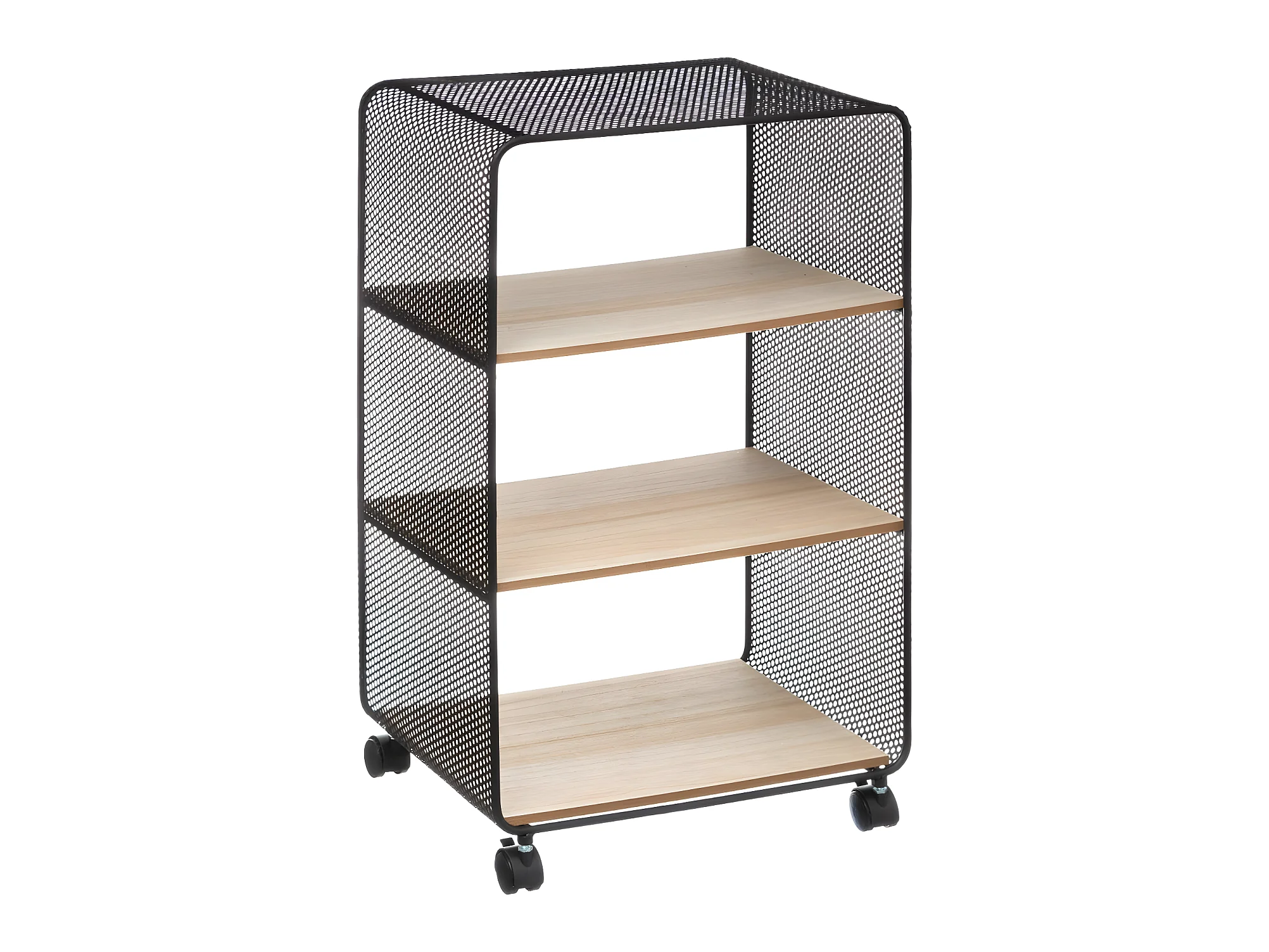 Étagère 3 cases sur roues en métal et Bois H 73 cm