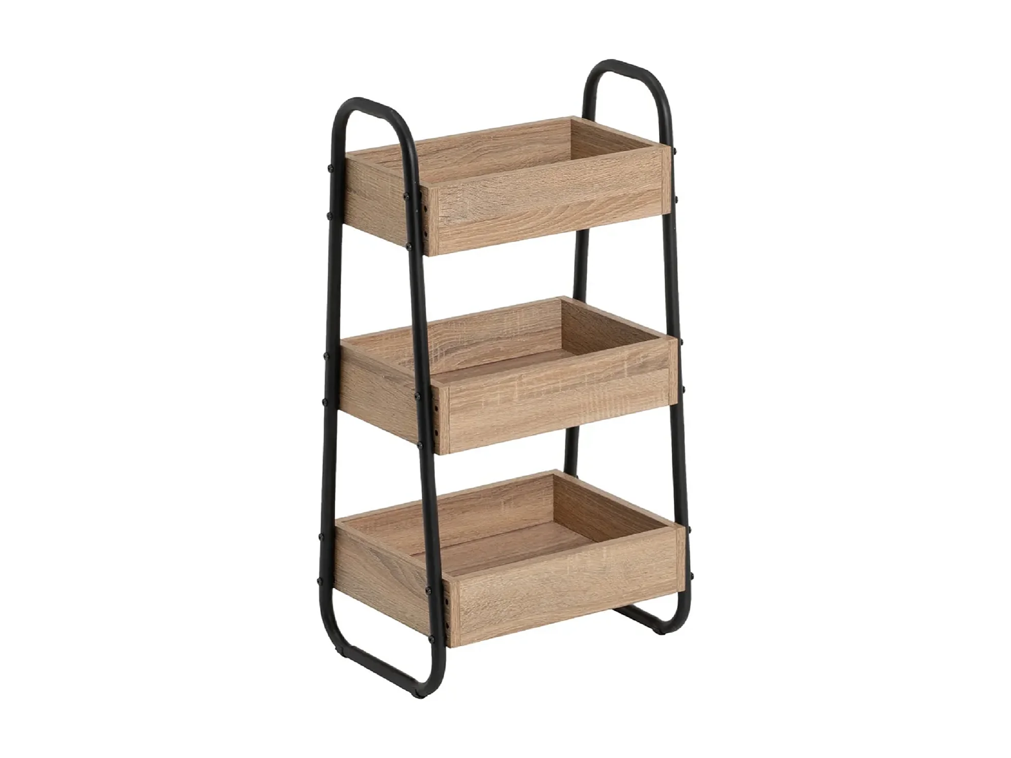 Étagère, meuble de rangement avec 3 paniers en bois aggloméré coloris chêne et pieds en métal noir - Longueur 41 x Profondeur 30 x Hauteur 77 cm
