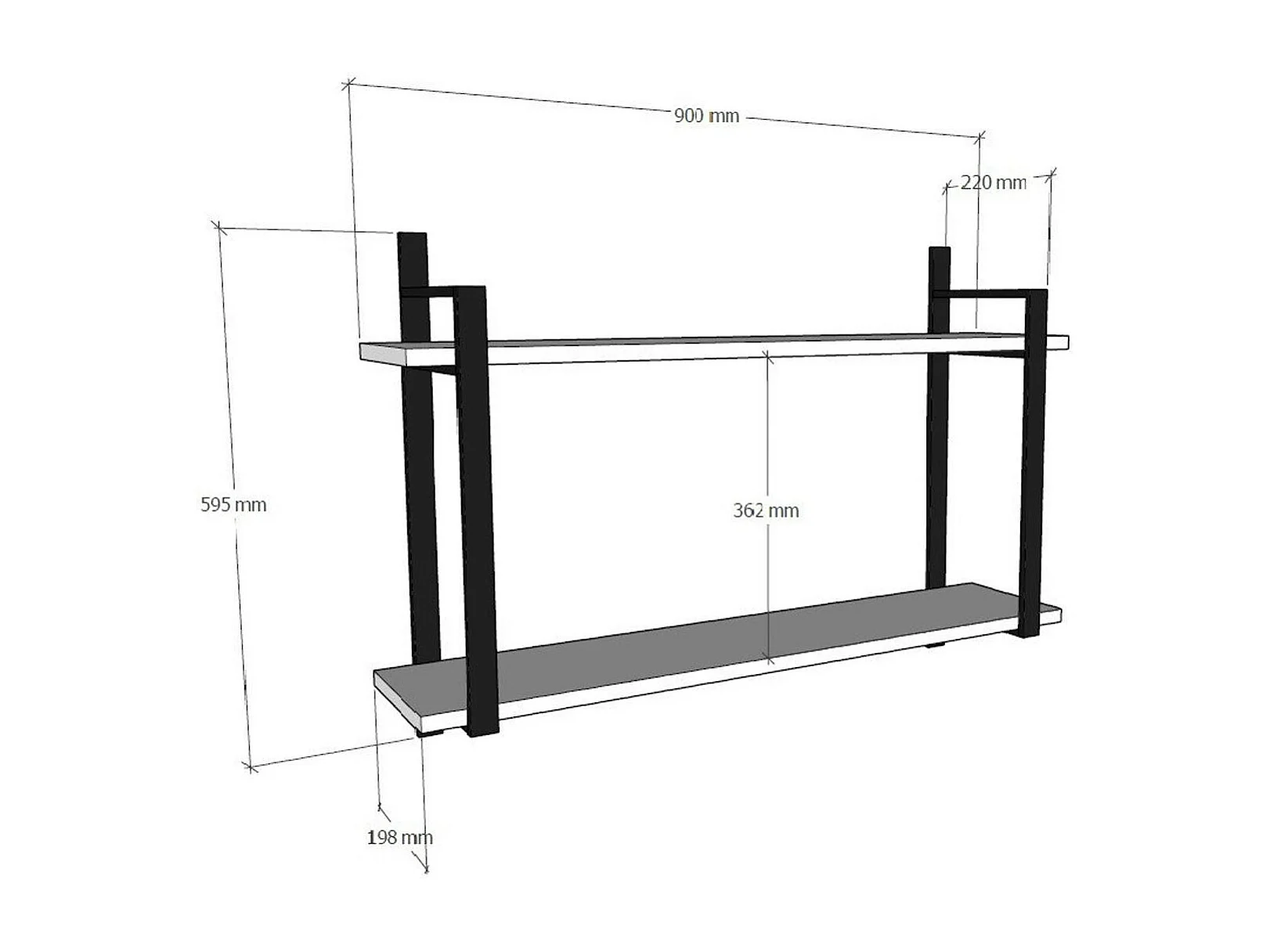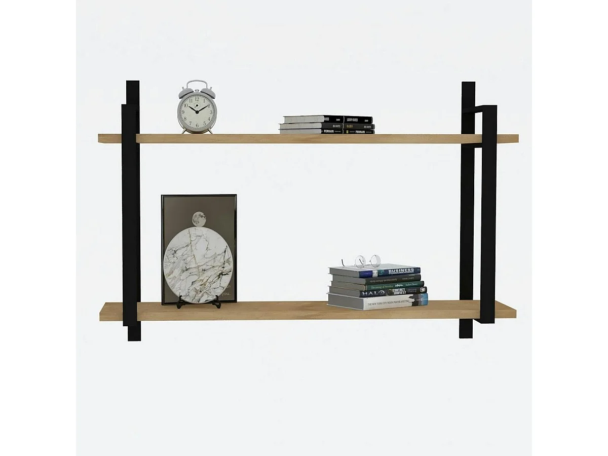 Etagère murale décor bois foncé à montants noirs JENA