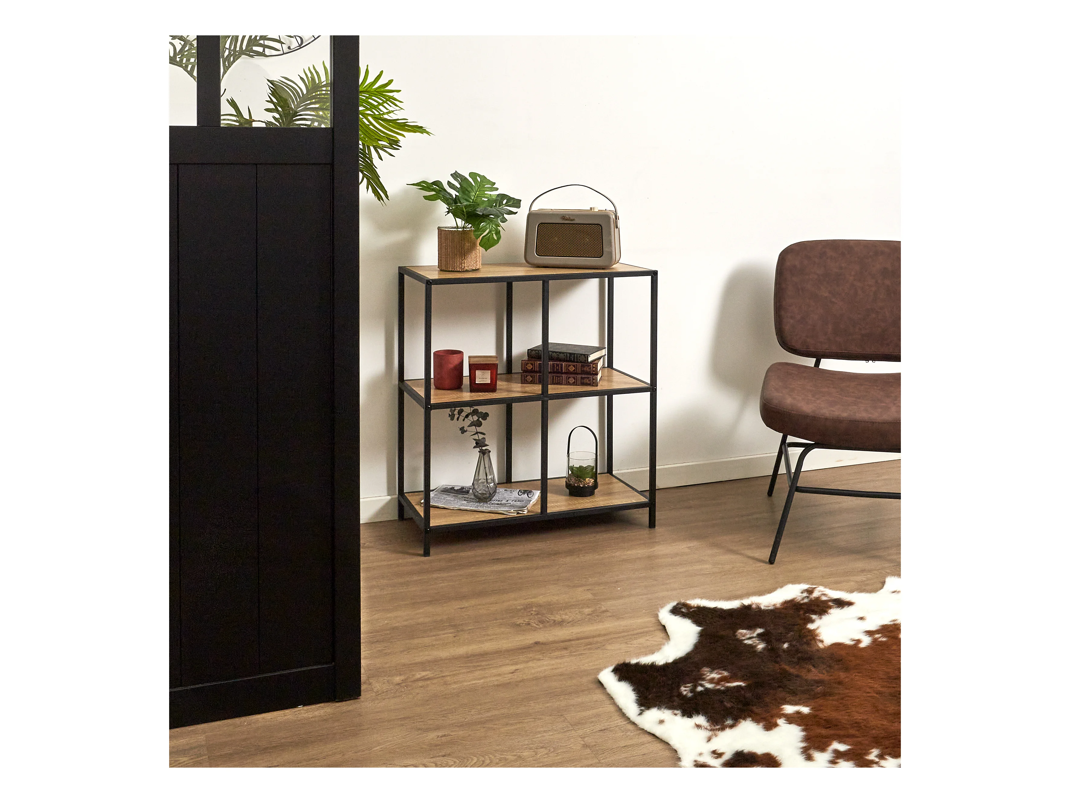 Rangement Modulable 4 Cases Loka Marron, Noir