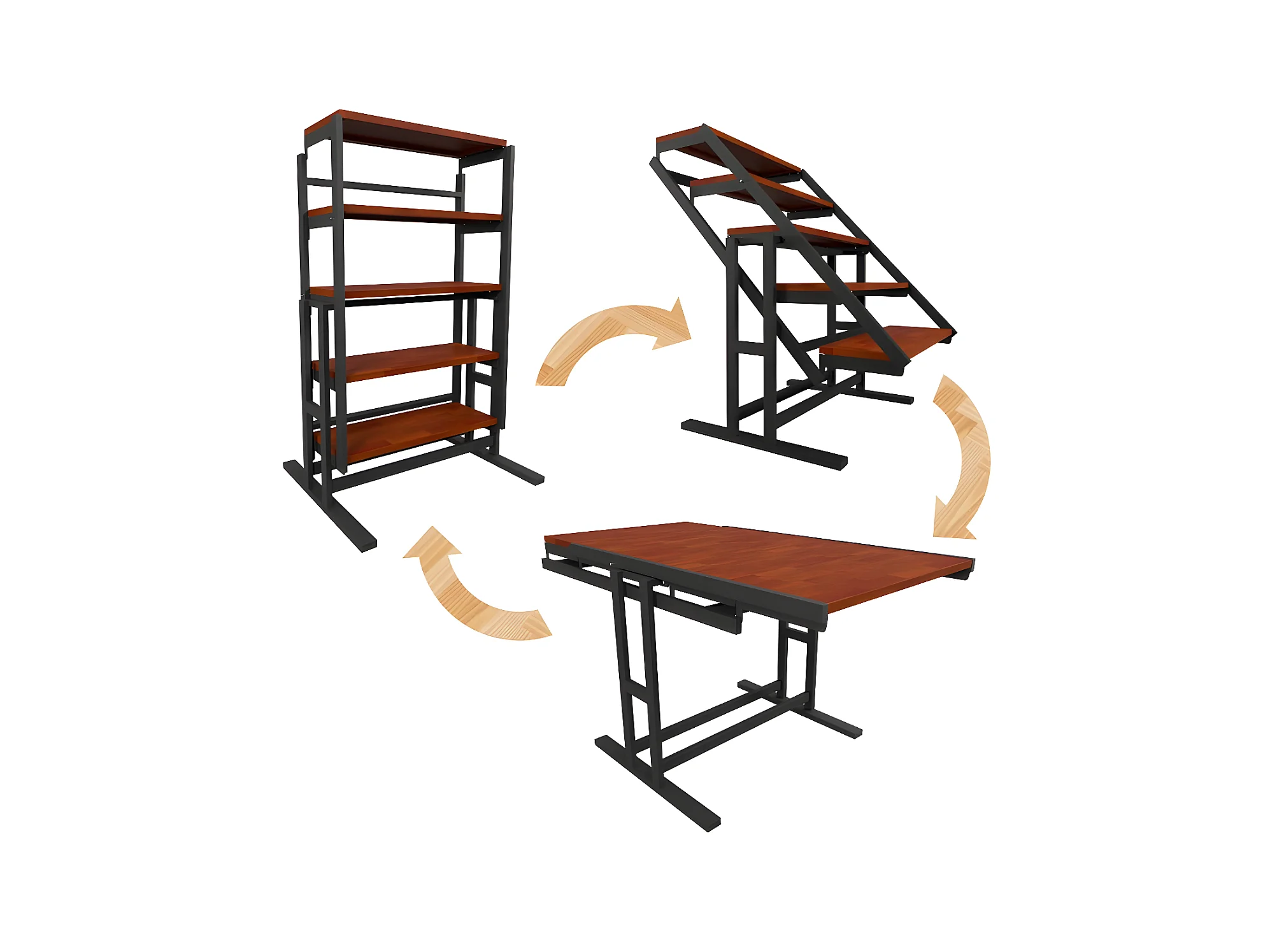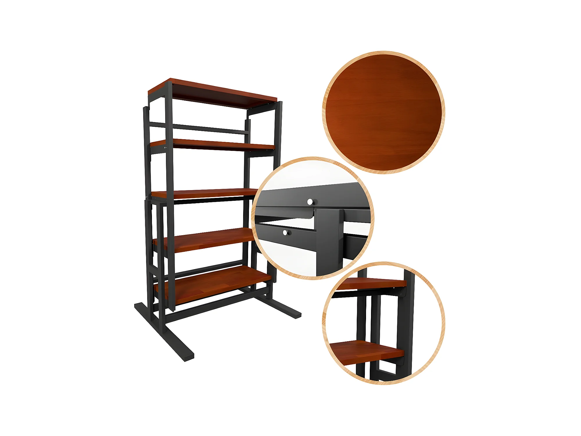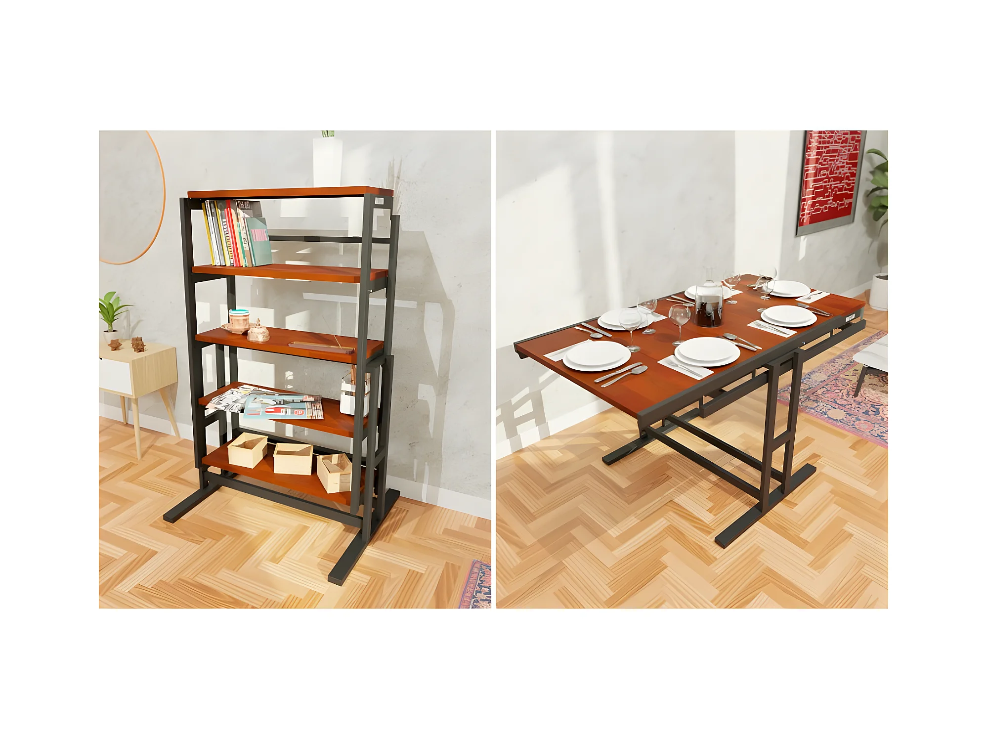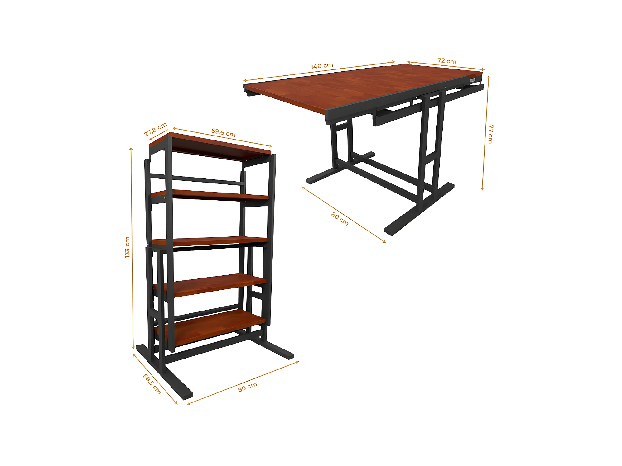 Etagère modulable en Bois (H133 x l80 x P68,5 cm) convertible en Table - style industriel - Couleur Chêne naturel