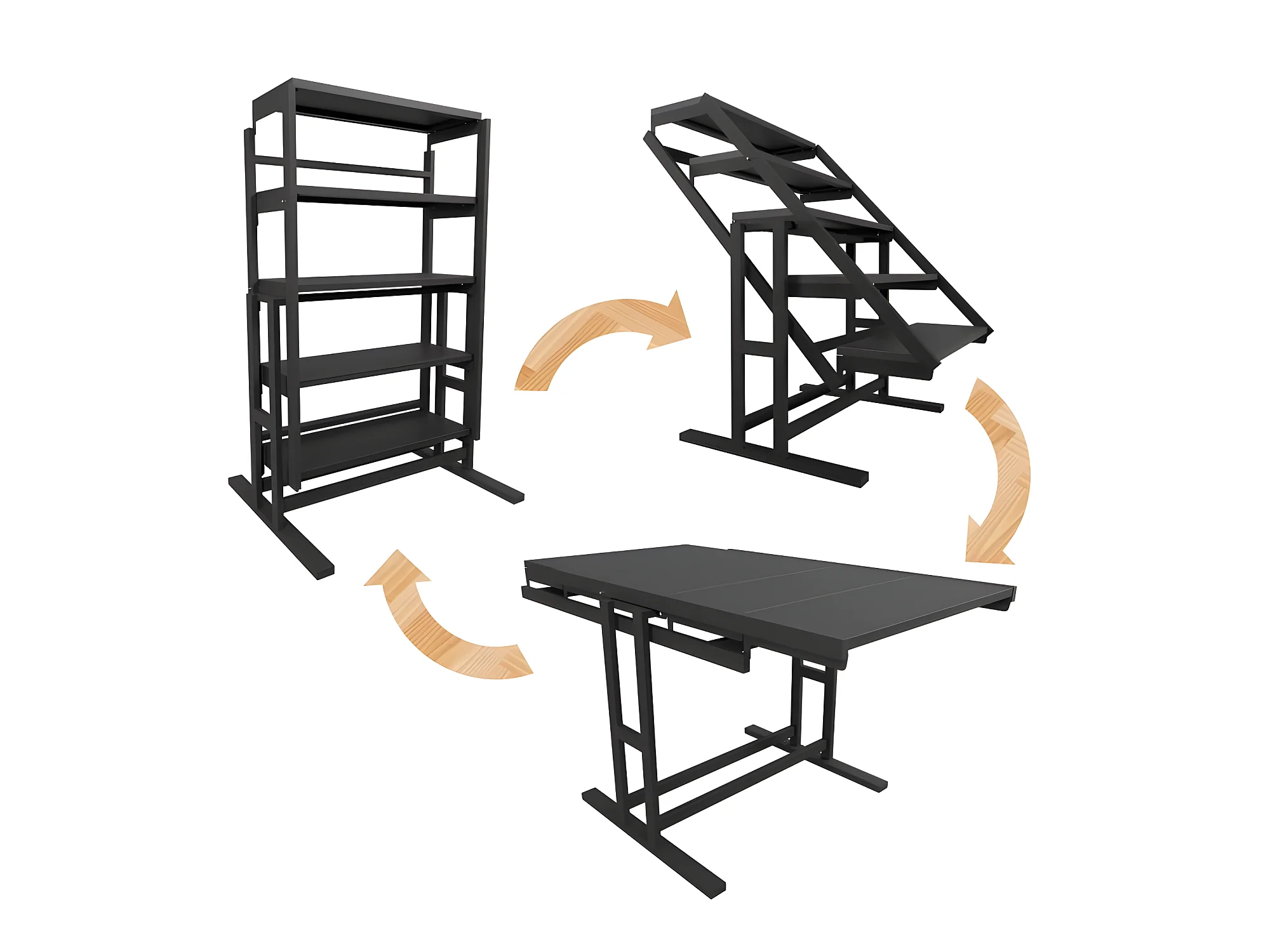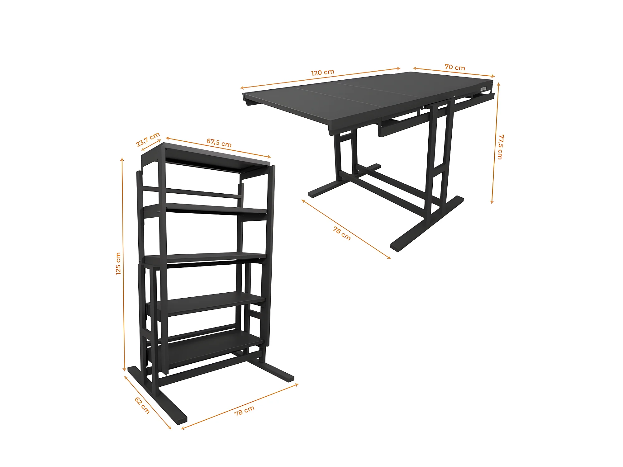 Etagère modulable (H125 x l78 x P62 cm) convertible en Table - style industriel