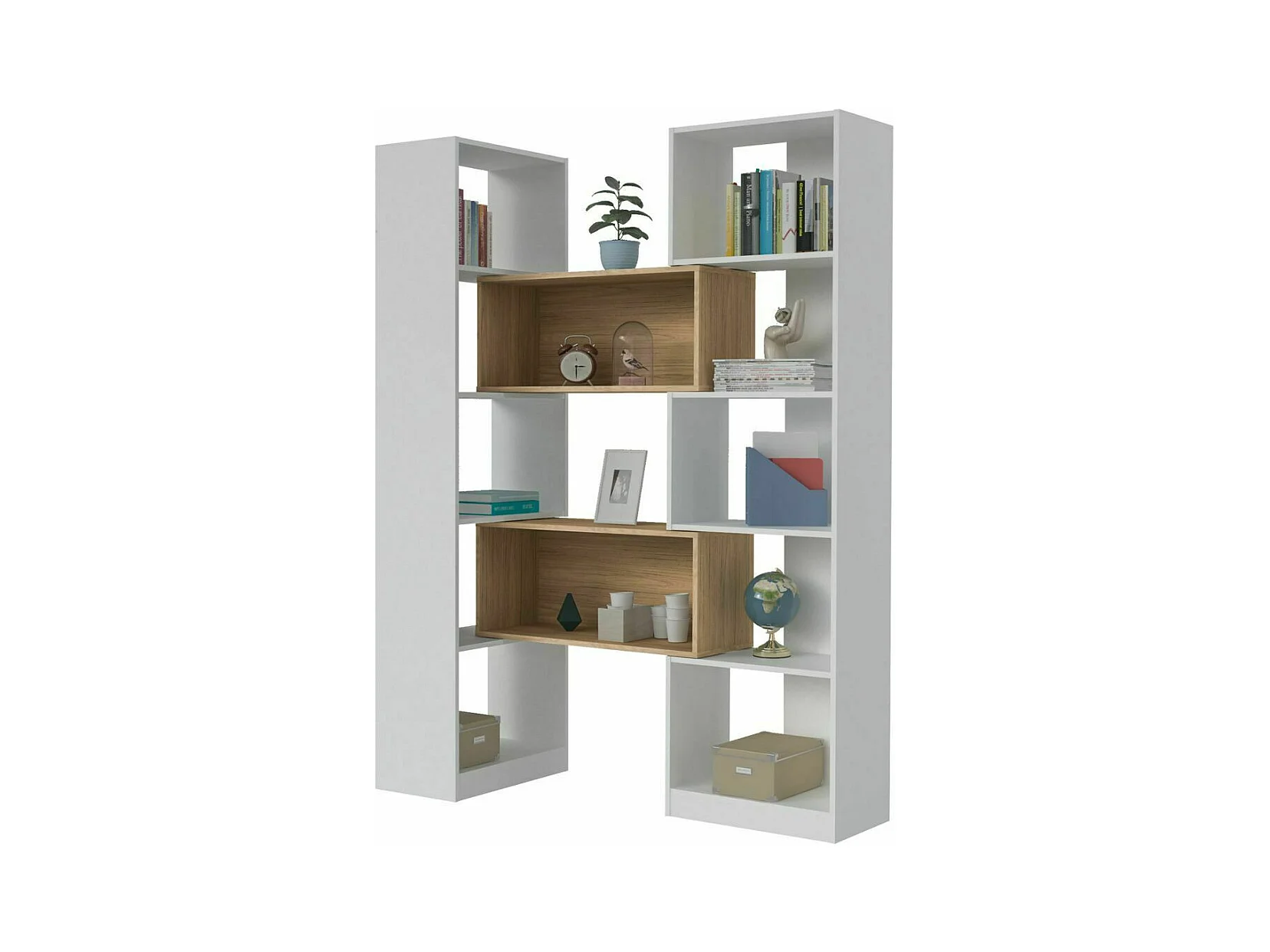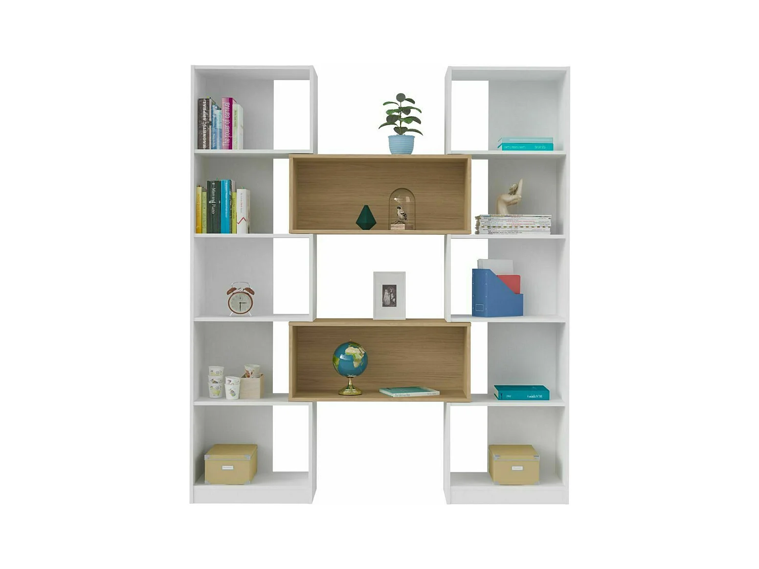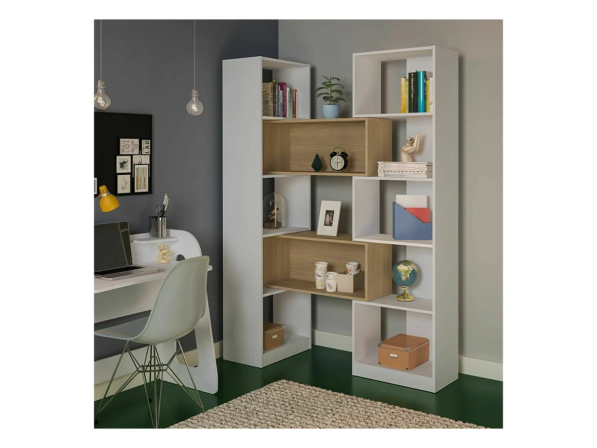 Etagère bibliothèque modulable Rubeus panneaux de fibres blanc et bois RUBEUS