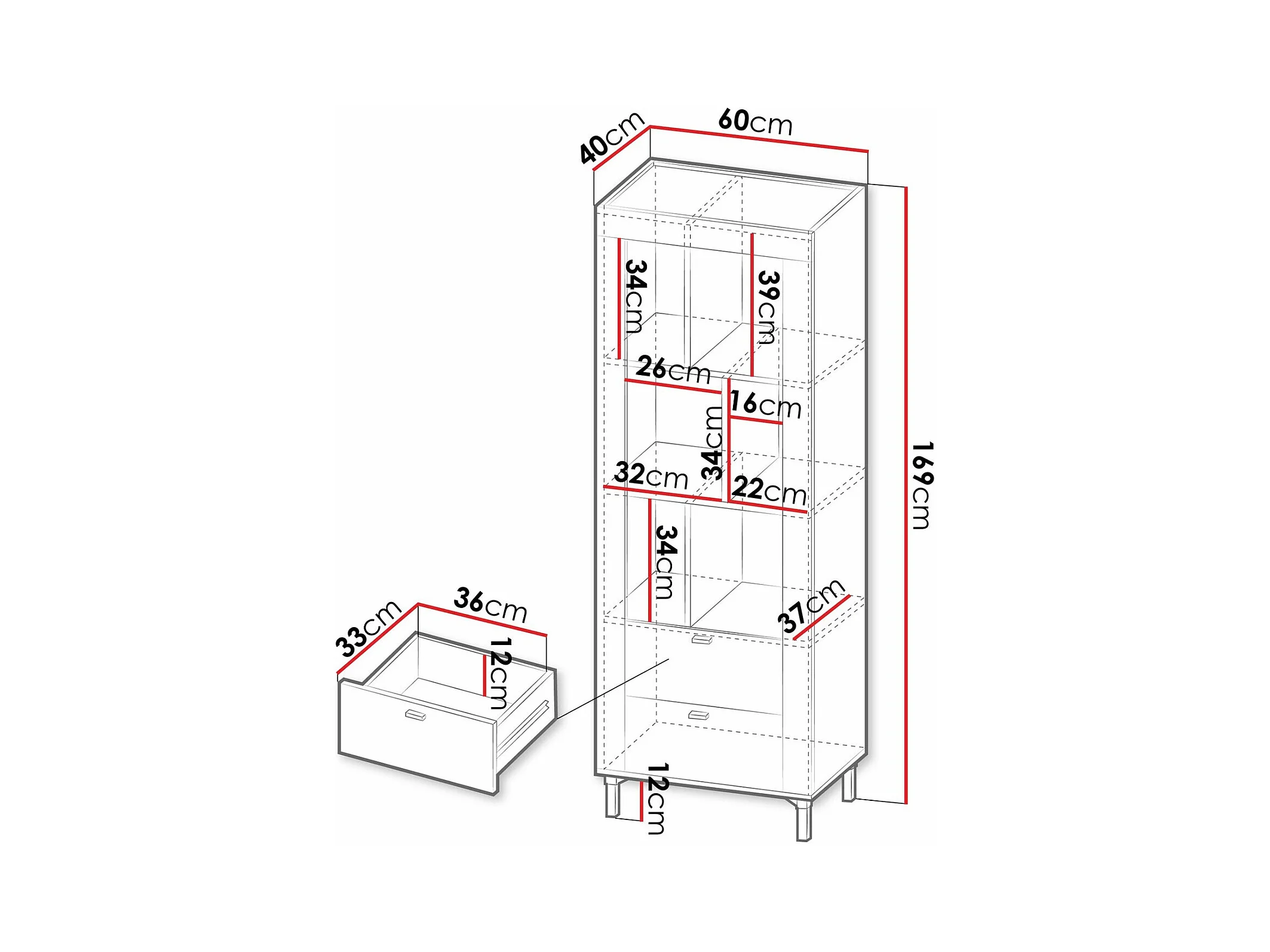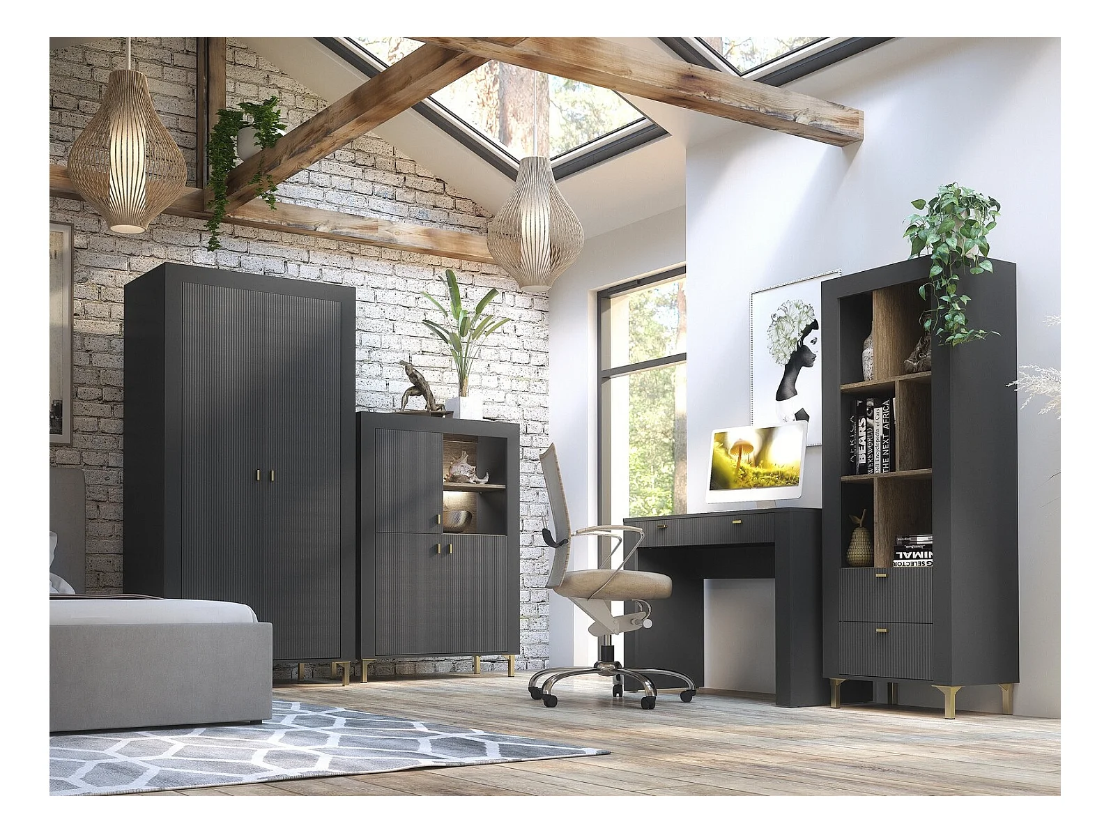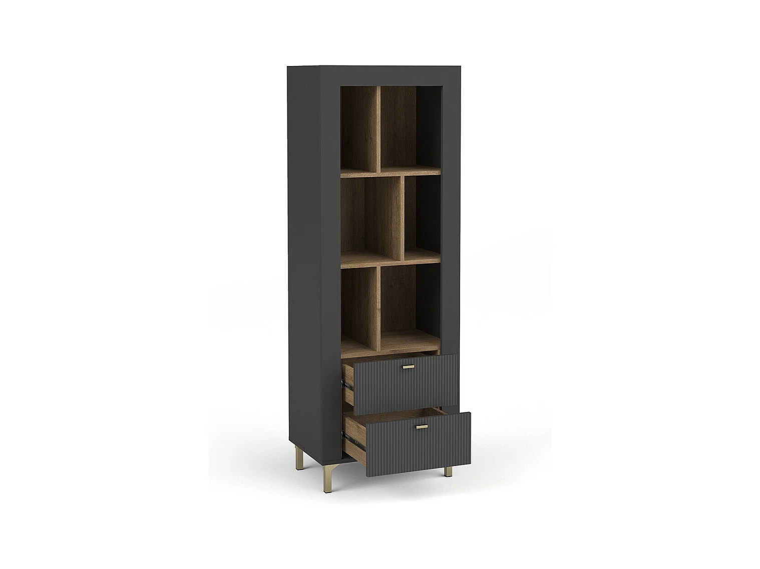 Étagère Mormavu 102, Ouvert|Avec tiroirs, Stratifié, 169x60x40cm, Noir mat|Chêne