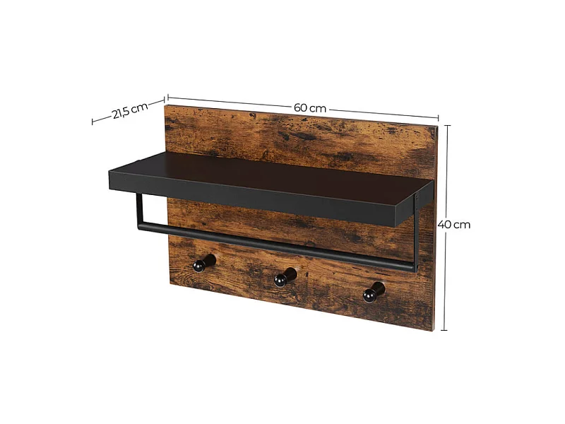 Etagère murale 3 patères métal et bois - Naturel fonce