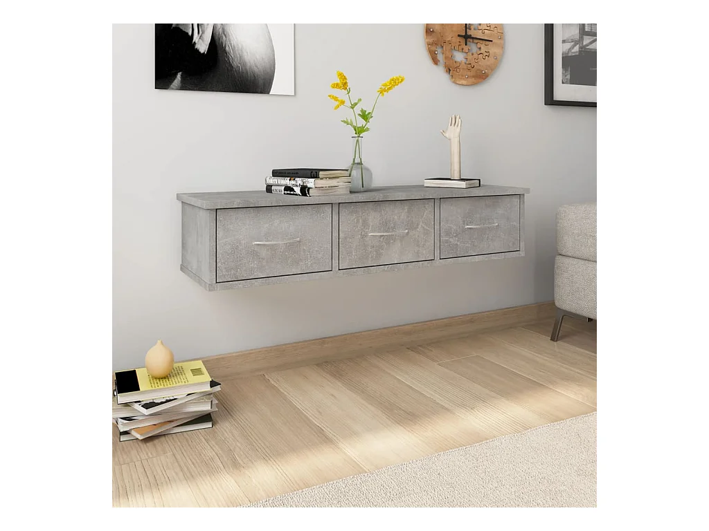 Étagère murale avec tiroirs Gris béton 88x26x18,5 cm Aggloméré OFR60298 BonneVie Meuble