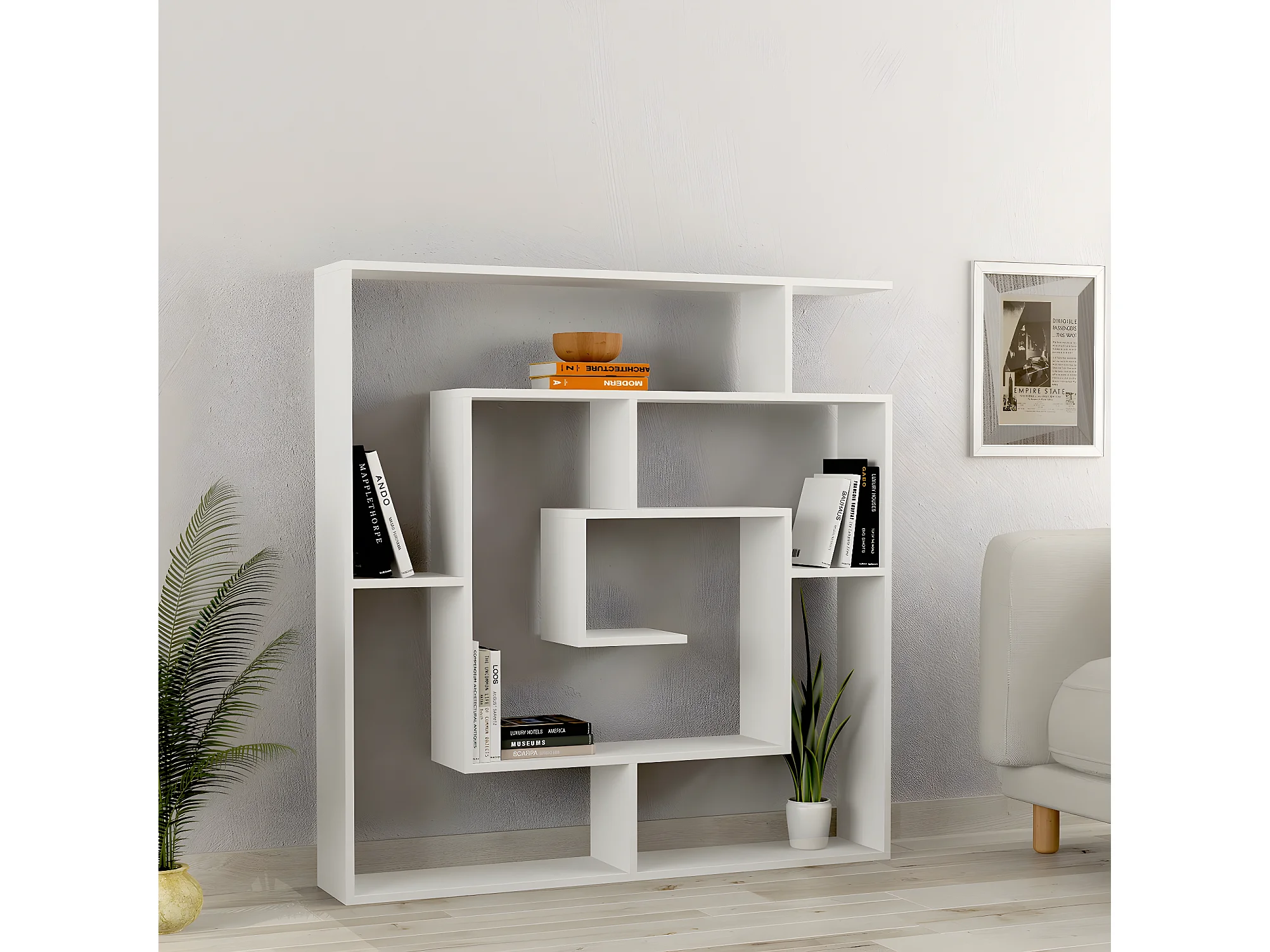 Etagère murale, bibliothèque en bois coloris blanc - L. 125 x P. 22 x H. 129 cm