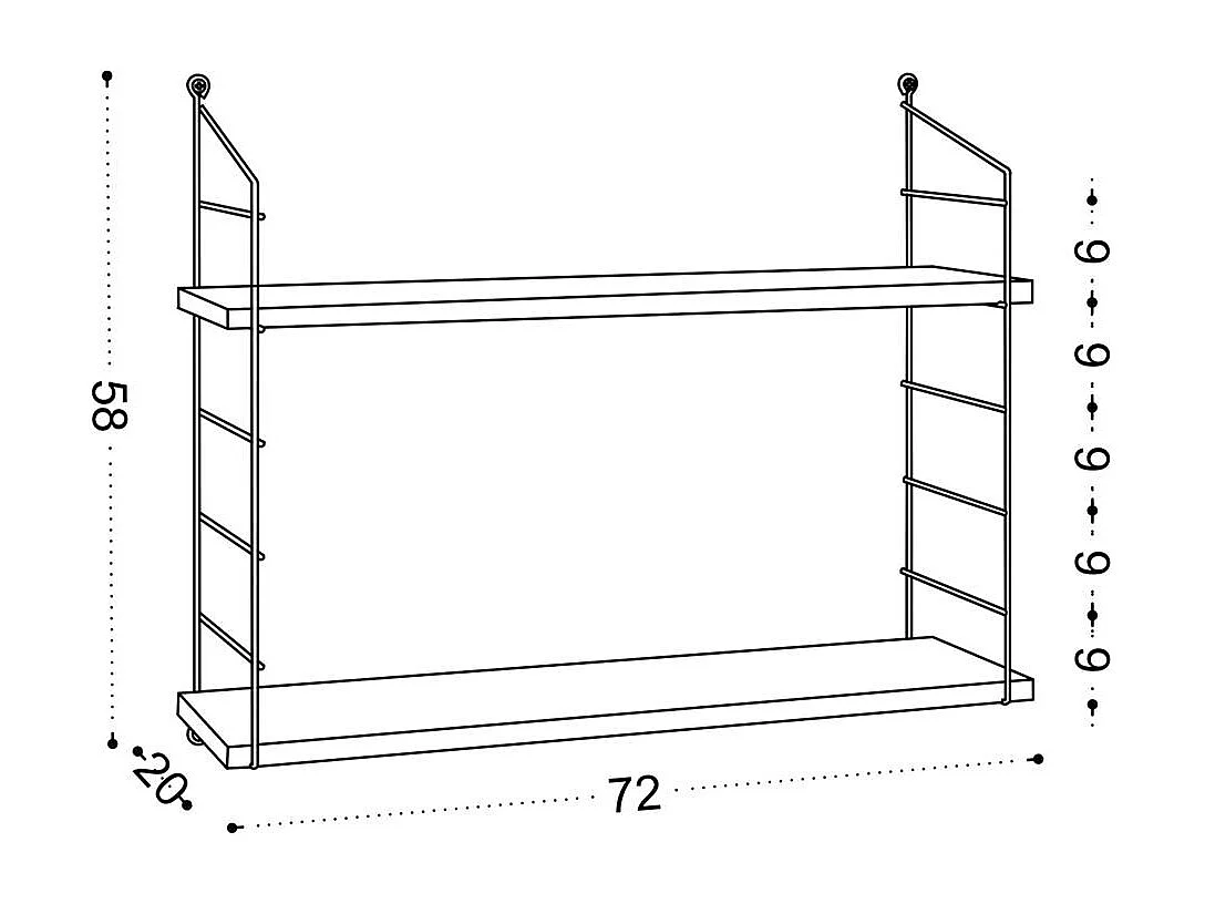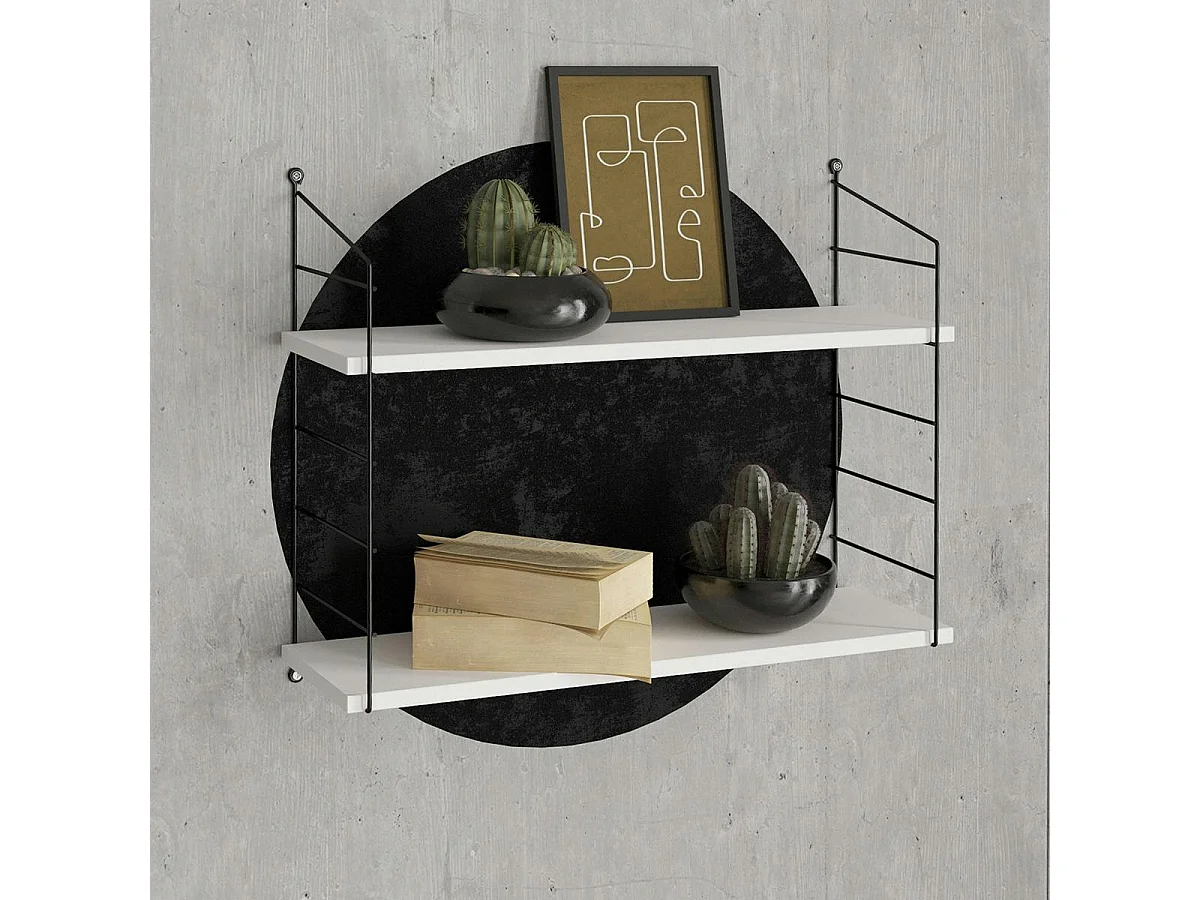 Etagère murale blanche 2 plateaux à montants noirs JENA