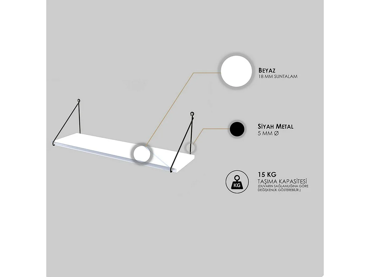 Étagère murale blanche 3 plateaux supports métal noir JENA