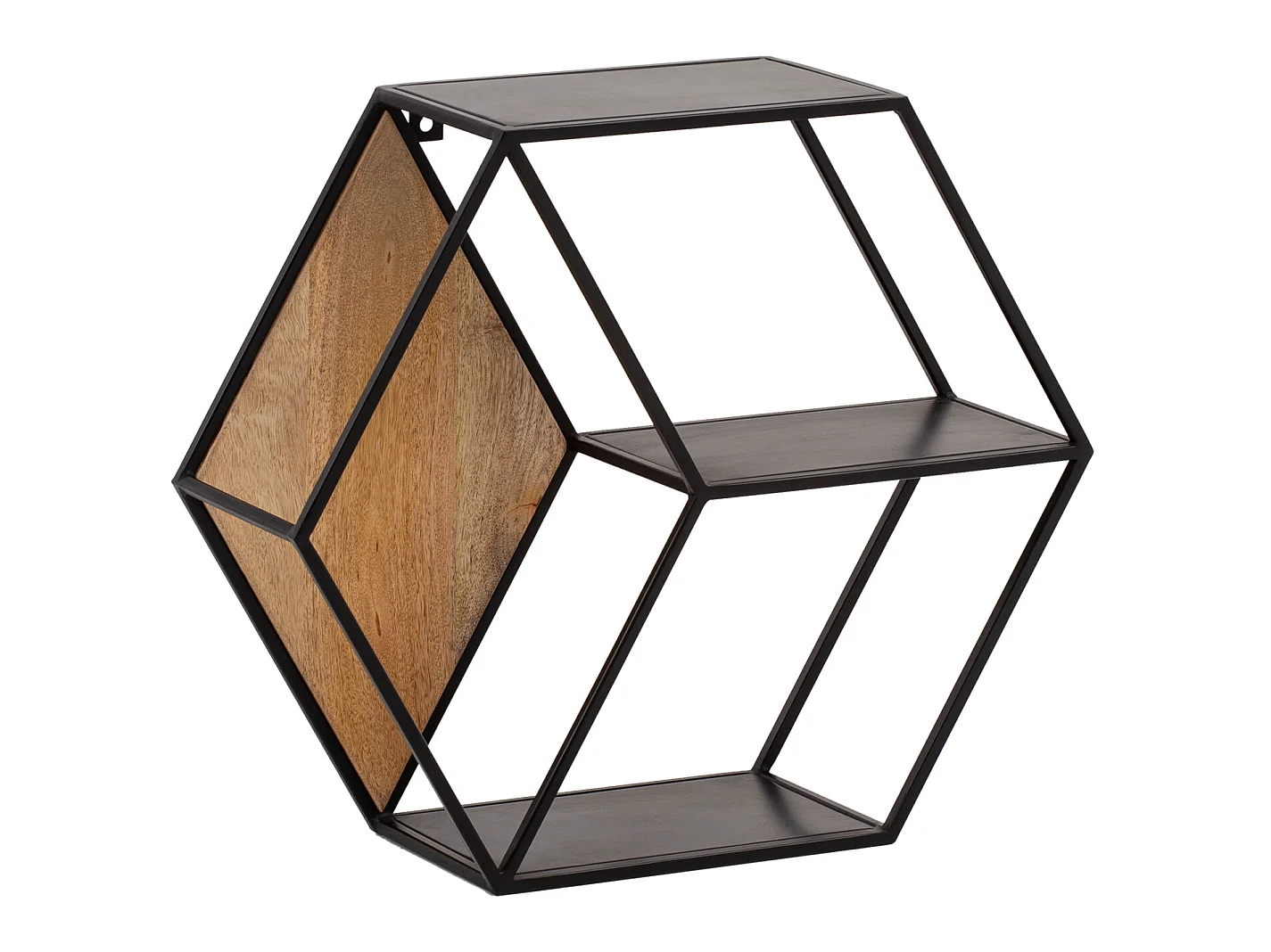 Étagère Murale Bois Massif Métal 60x52x20 cm Étagère Suspendue Flottante