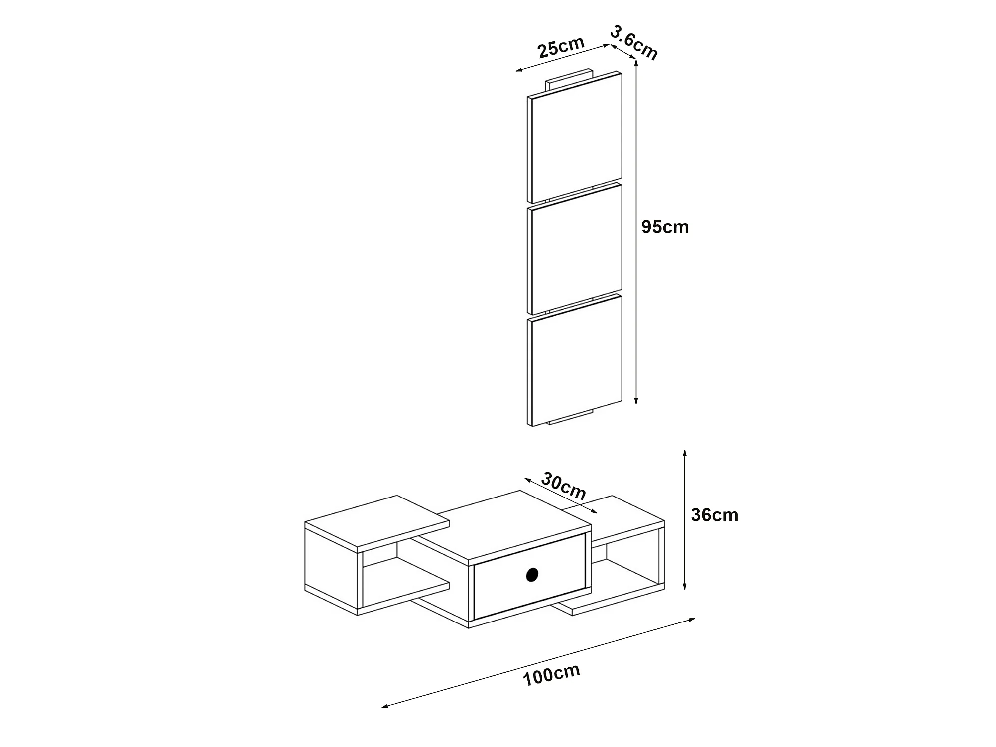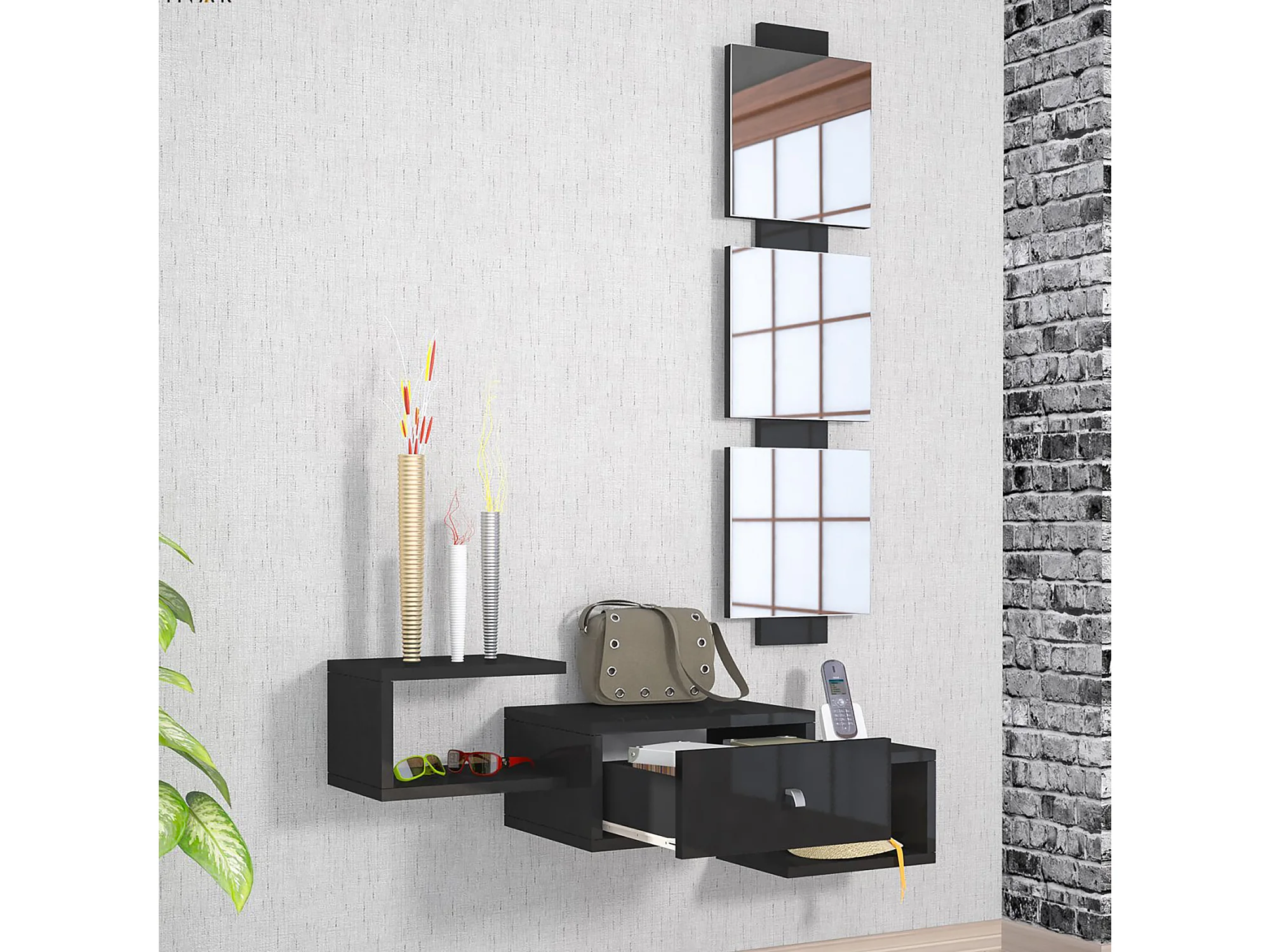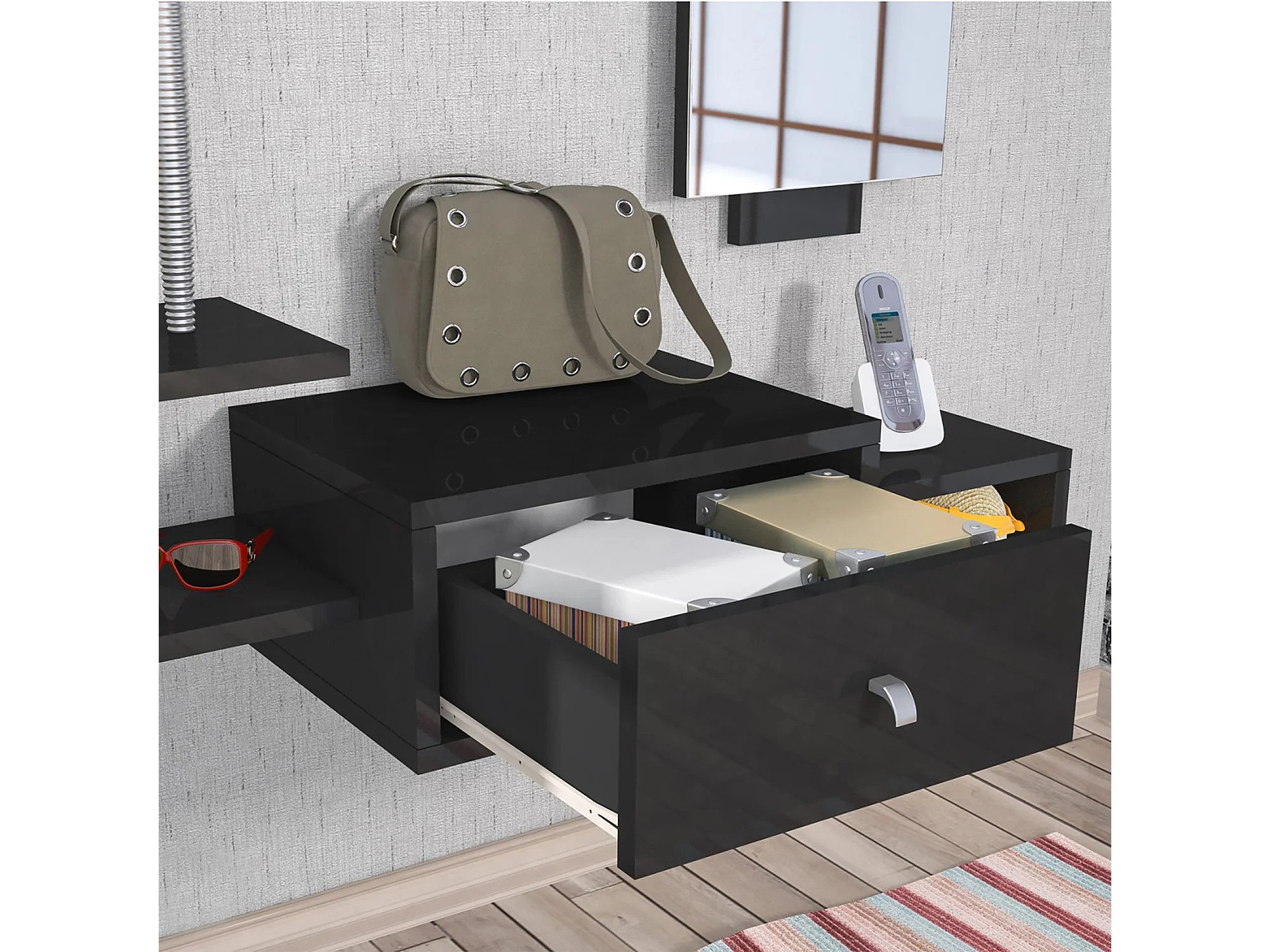 Étagère murale Brædstrup pour entrée avec miroir et tiroir noir [en.casa]