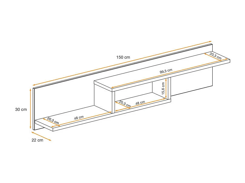 Étagère Murale "Cross" 150cm Naturel & Noir