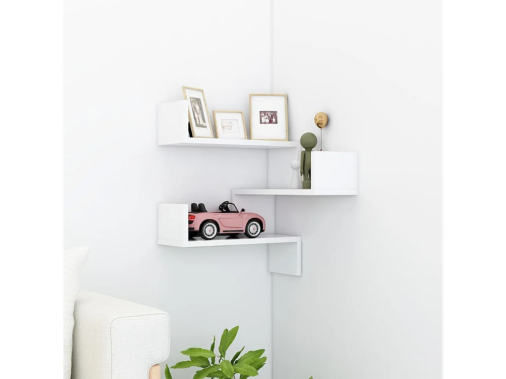 Étagère murale d'angle 2 pcs Blanc 40x40x50