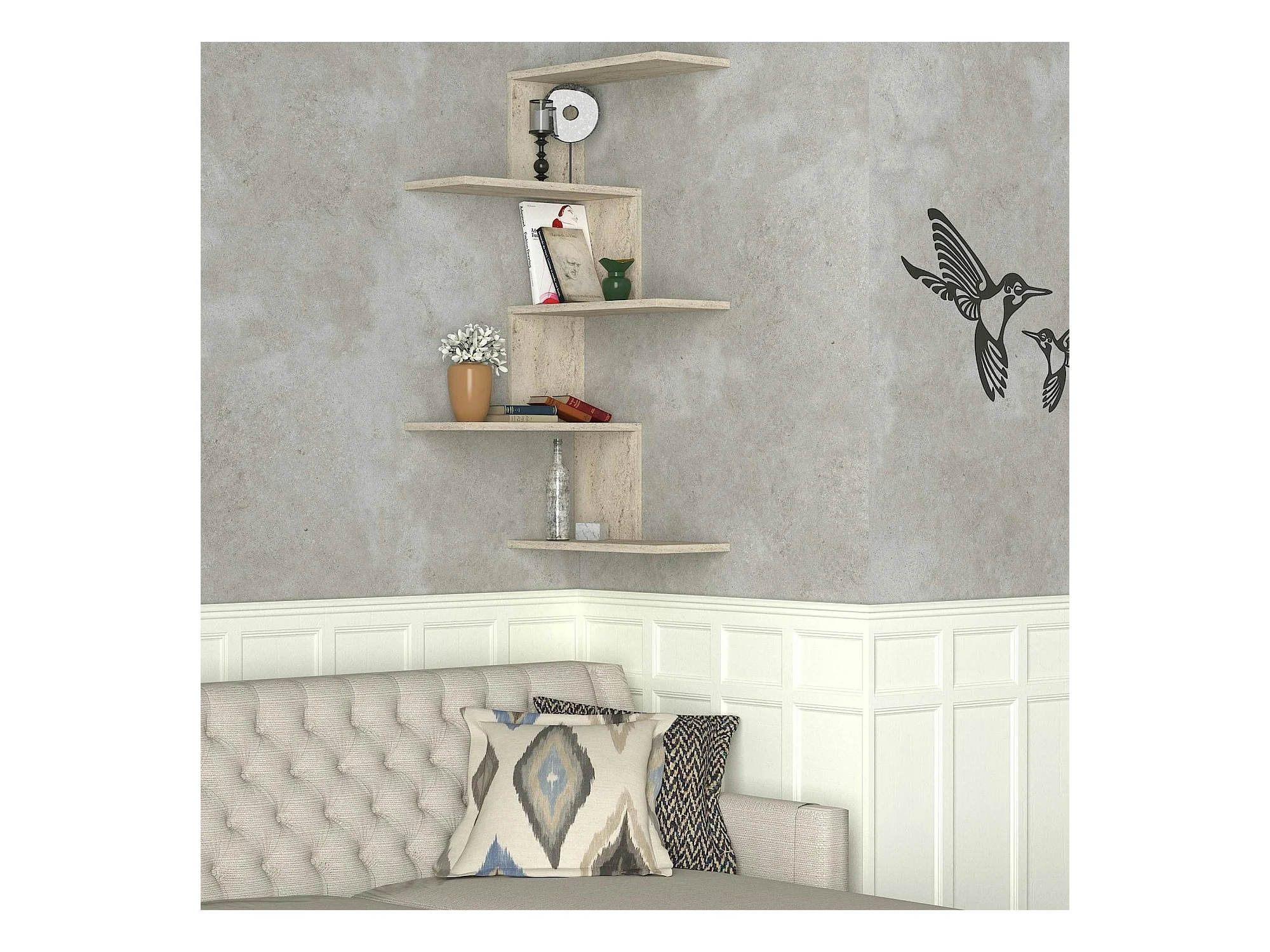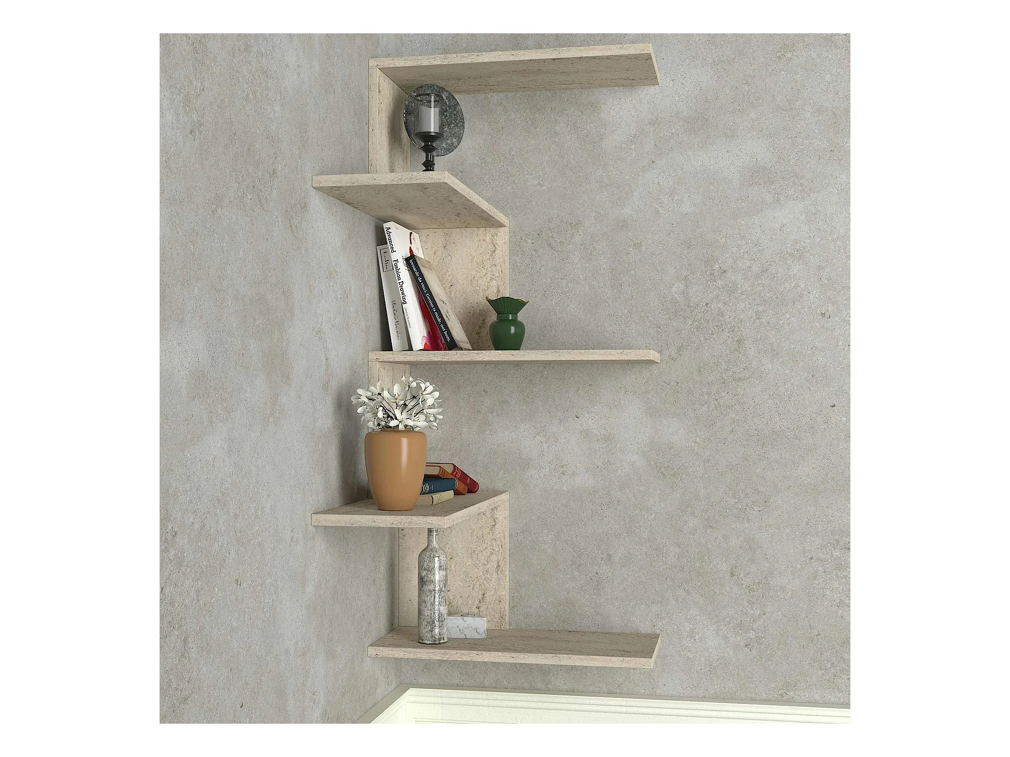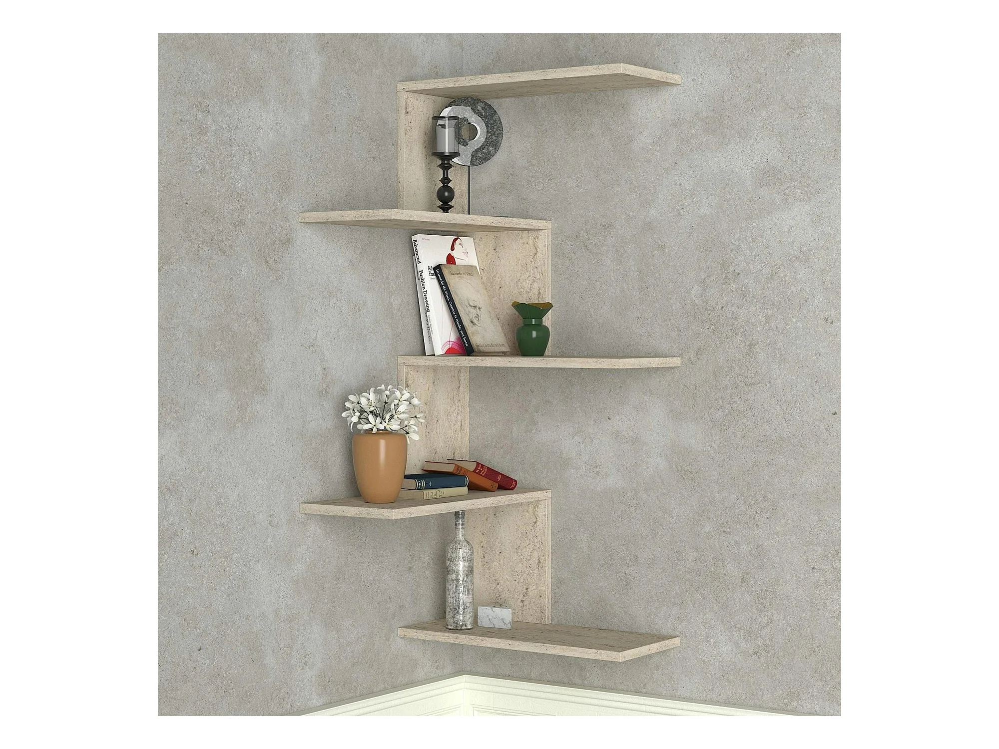Etagère murale d'angle effet bois clair - 2 niches JENA