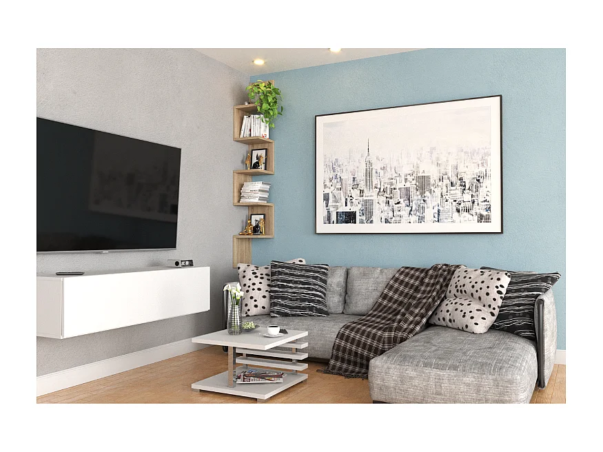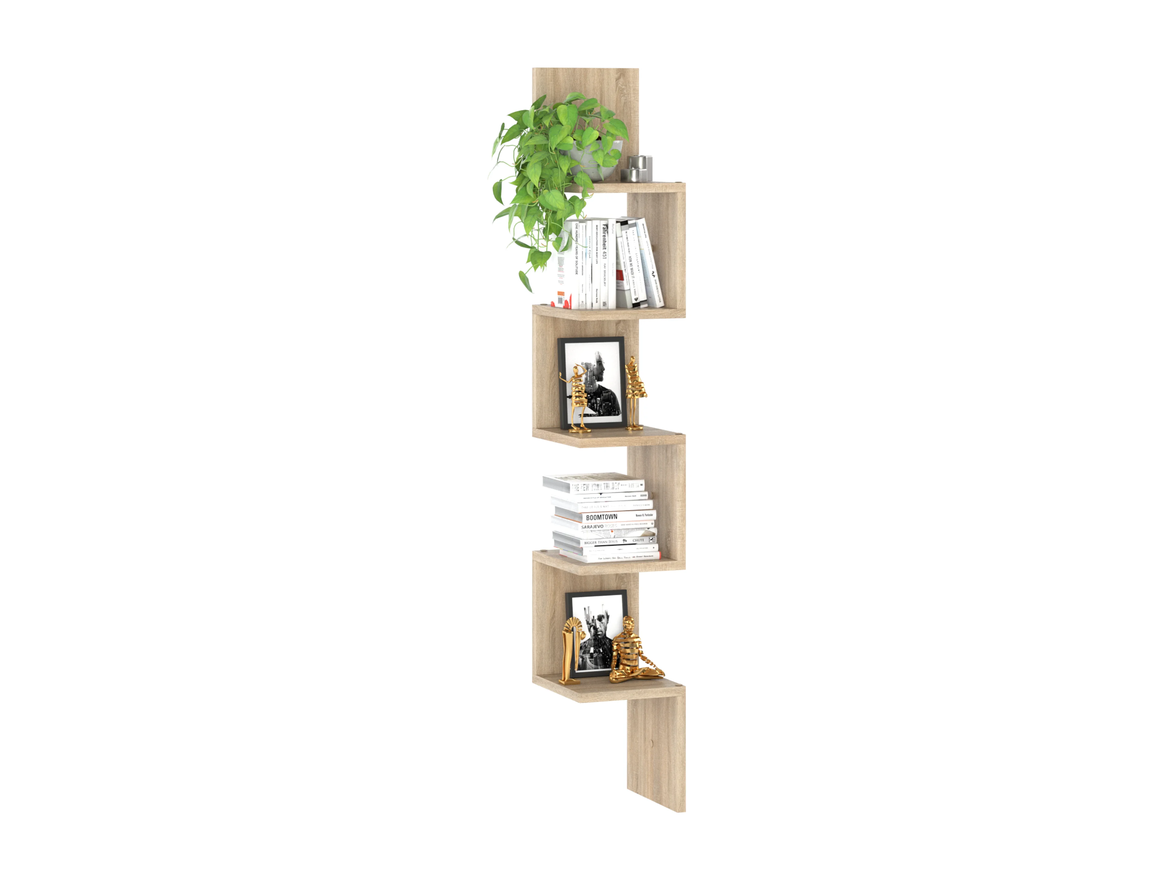 Étagère murale d’angle suspendue Chêne Sonoma – bibliothèque pour livres, jouets, style loft 22x142 cm