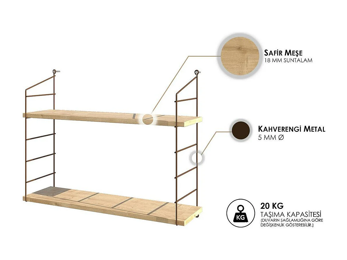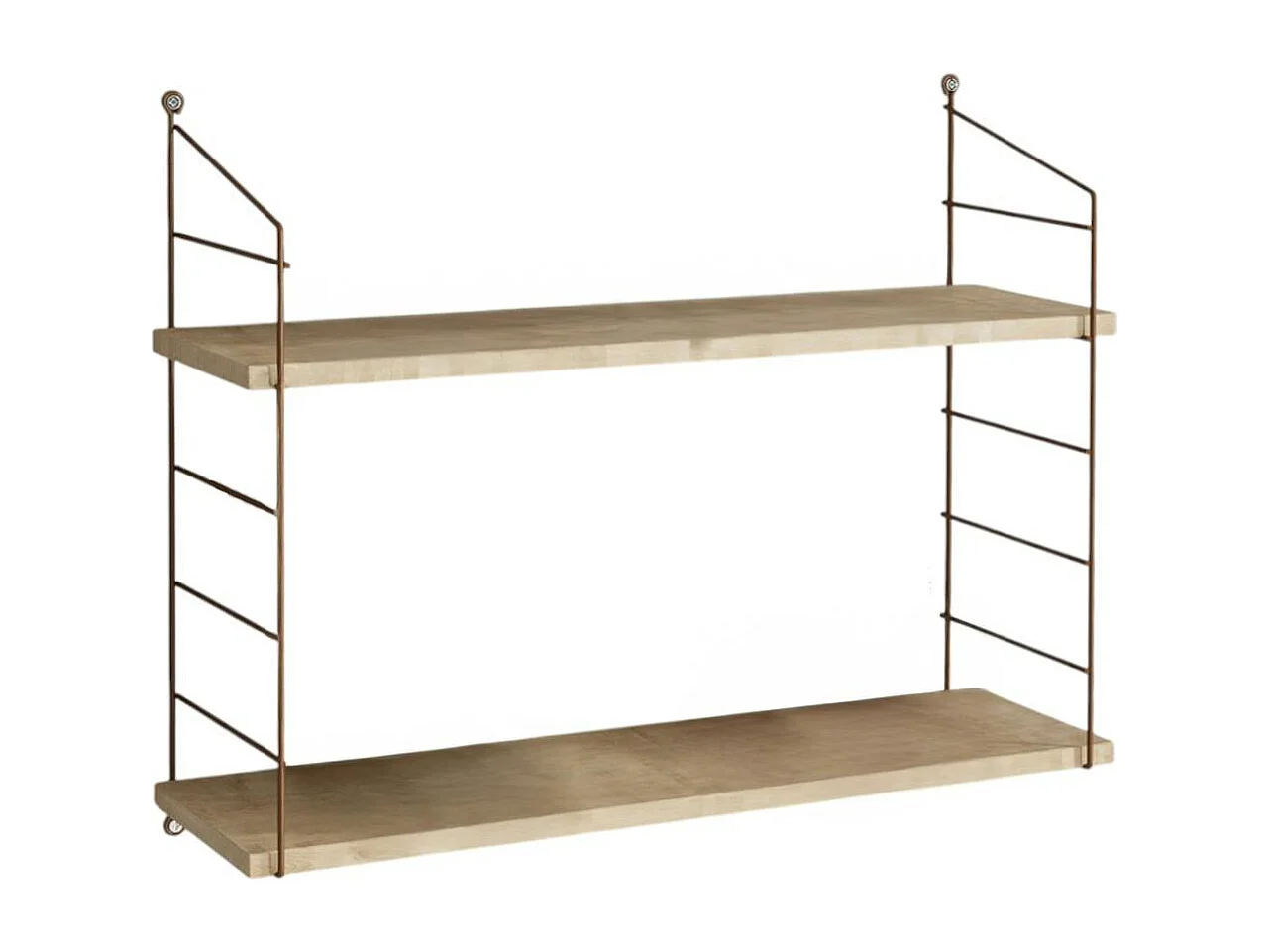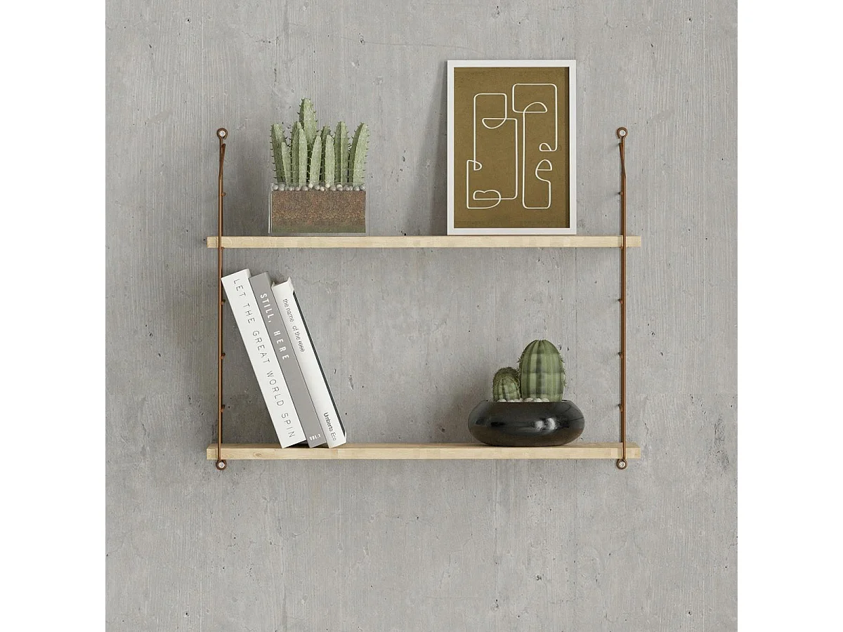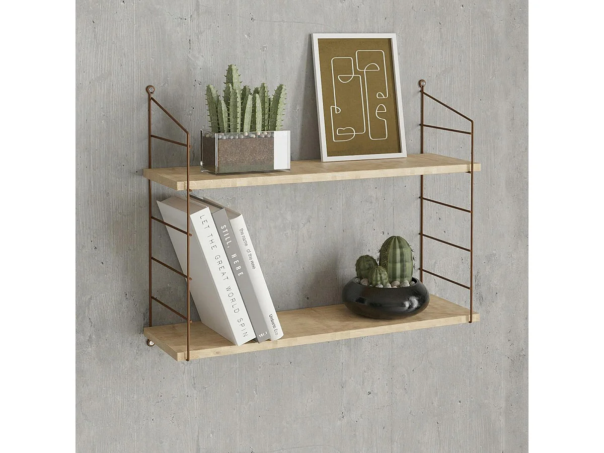 Etagère murale décor chêne 2 plateaux montants cuivrés JENA