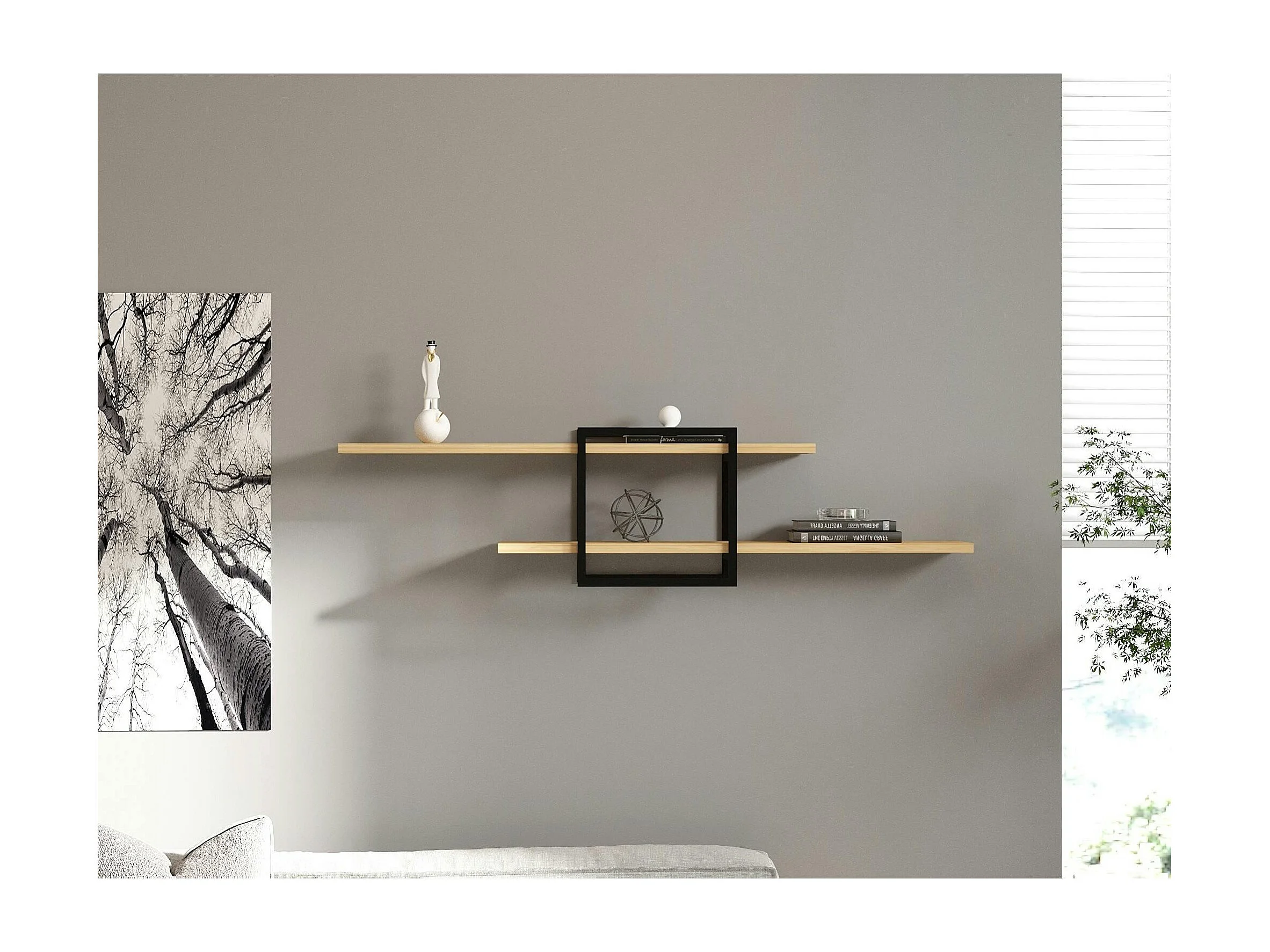 Étagère murale design effet pin - 1 cube, 2 plateaux JENA