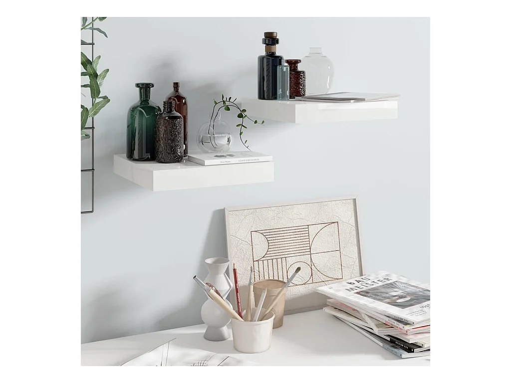 Étagère murale flottante 2 pcs Blanc brillant 23x23,5x3,8 MDF