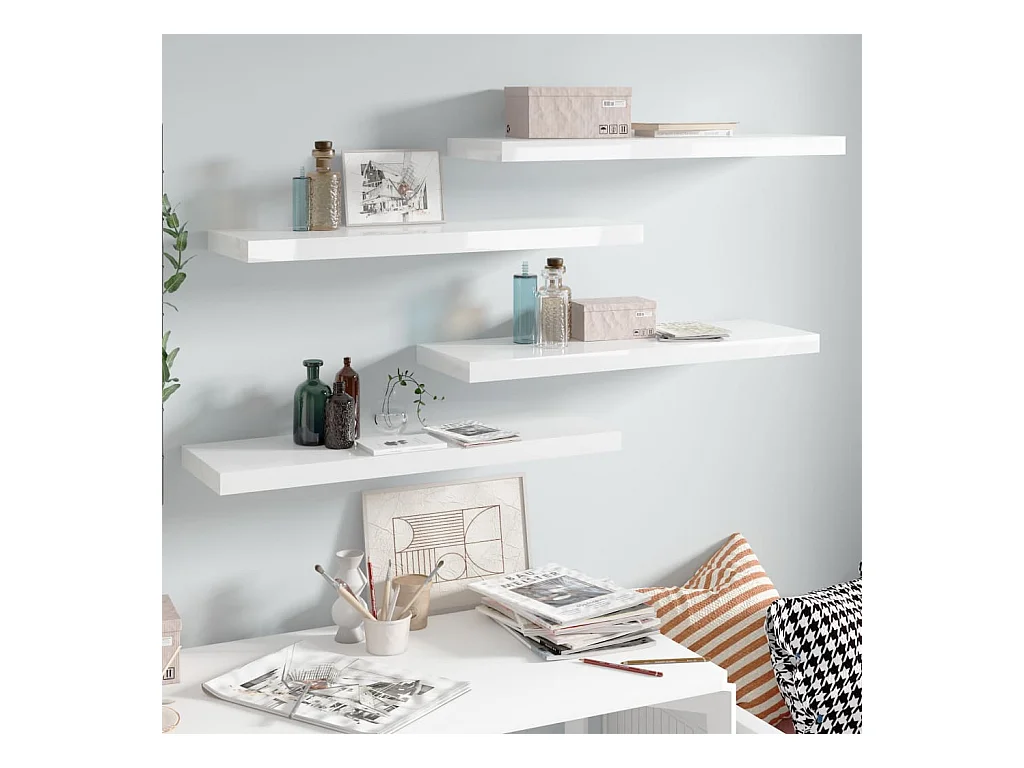 Étagère murale flottante 2pcs Blanc brillant 120x23,5x3,8 MDF