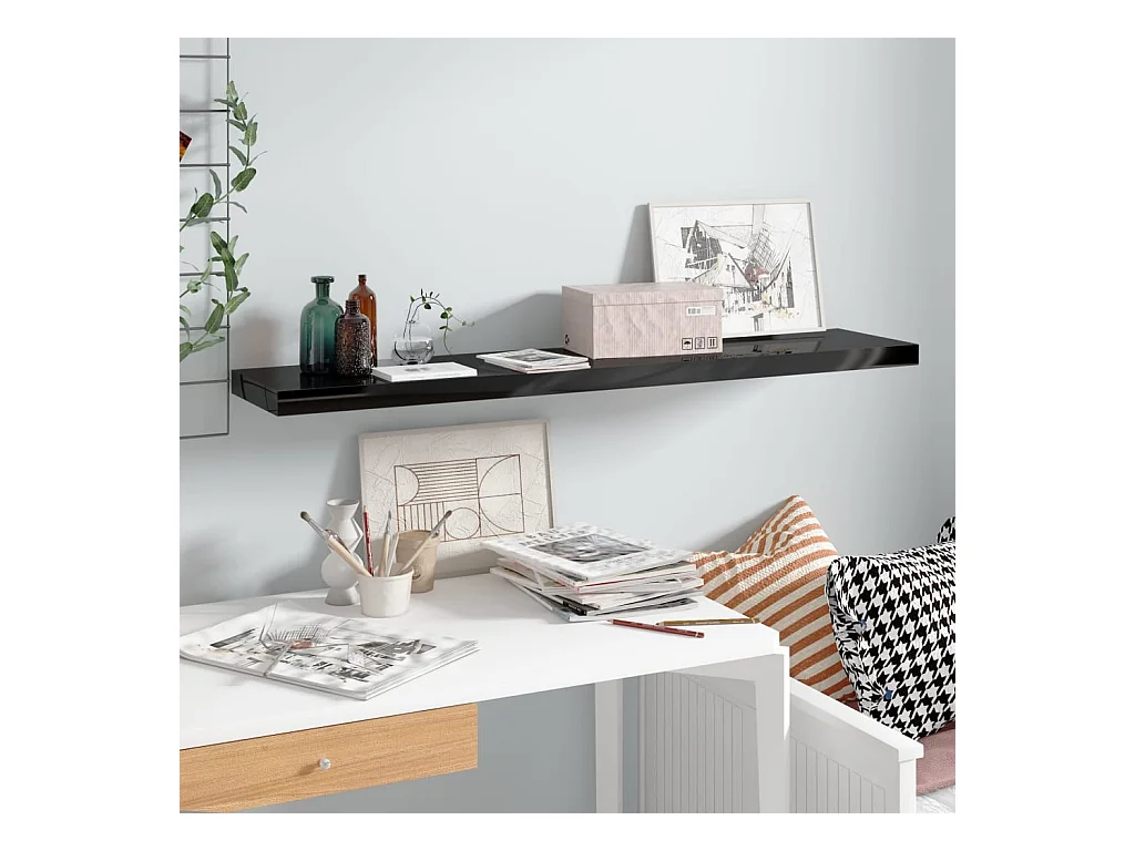 Étagère murale flottante Noir brillant 120x23,5x3,8 MDF