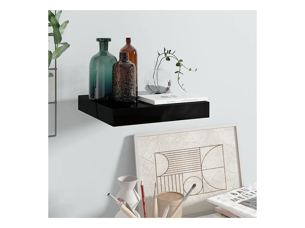 Étagère murale flottante Noir brillant 23x23,5x3,8 MDF