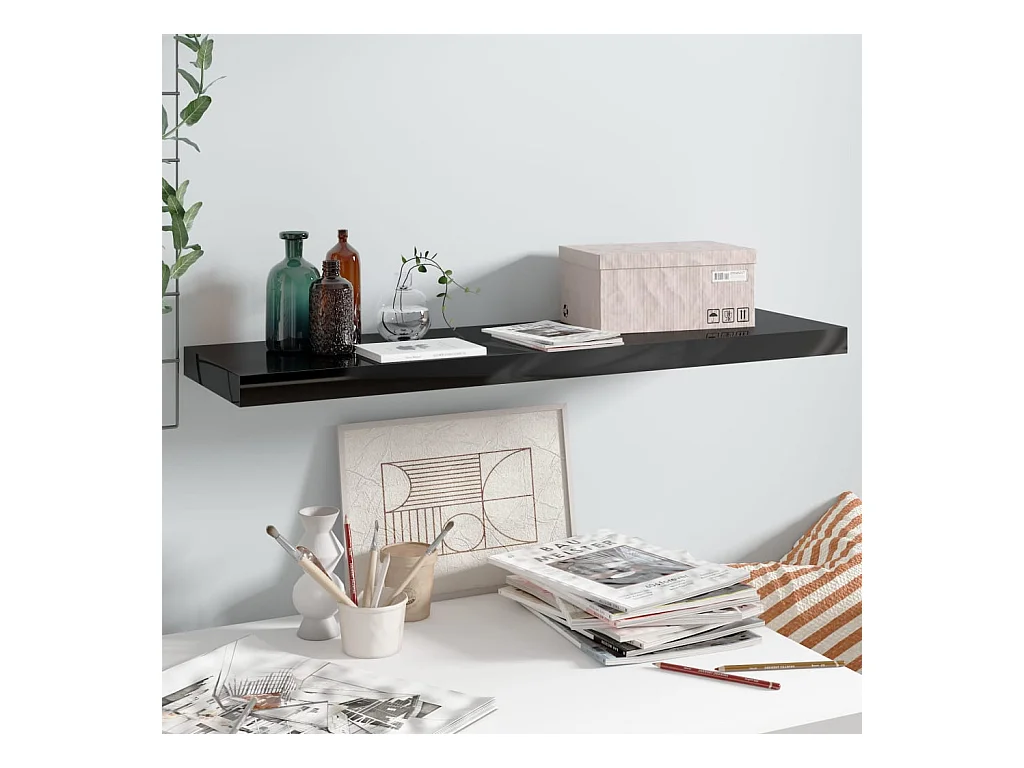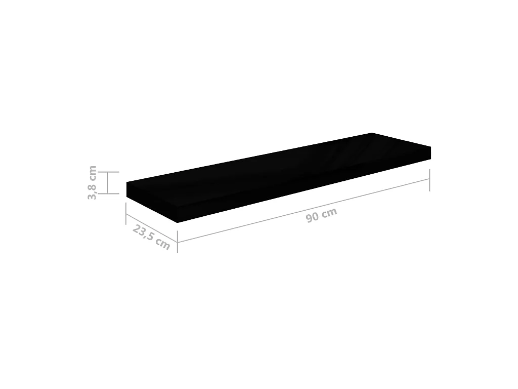 Étagère murale flottante Noir brillant 90x23,5x3,8 MDF