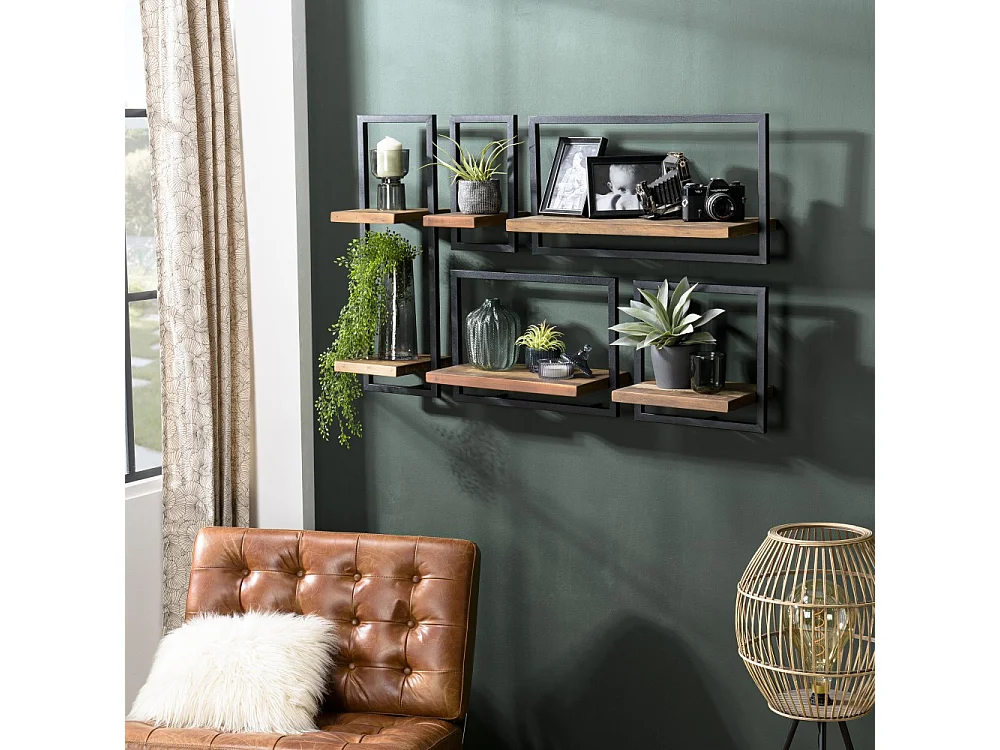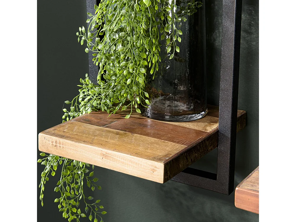 SIXTINE - Étagère murale 2 plateaux en bois de teck recyclé marron